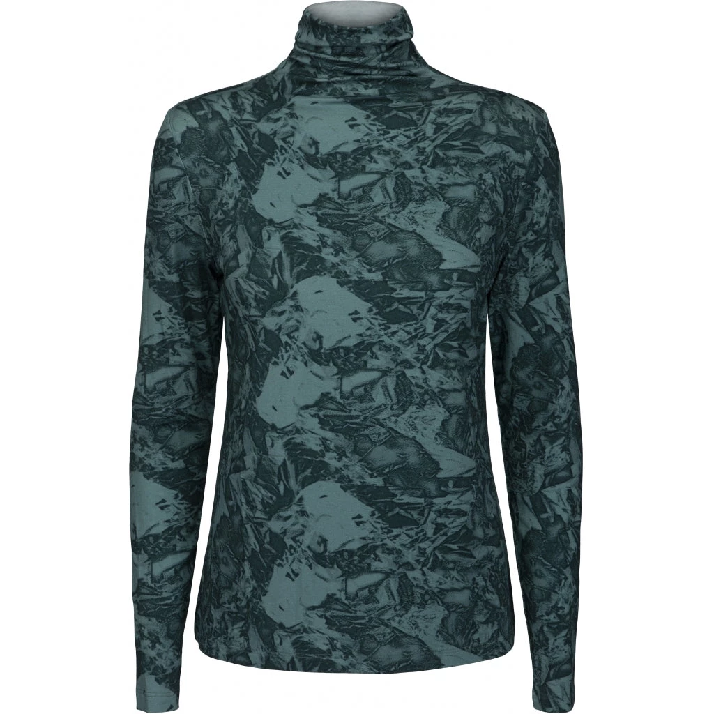 A nice and classic turtleneck with a lovely print. The blouse has long sleeves amd a good fit. It is formfitted.