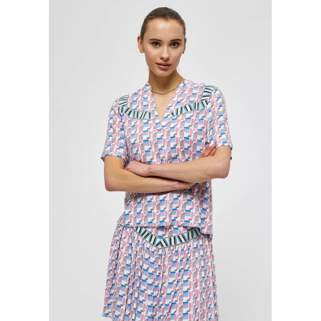 Beautiful blouse with lovely print. The blouse has short sleeves and a v-neck. Cool and perfect for the good weather.