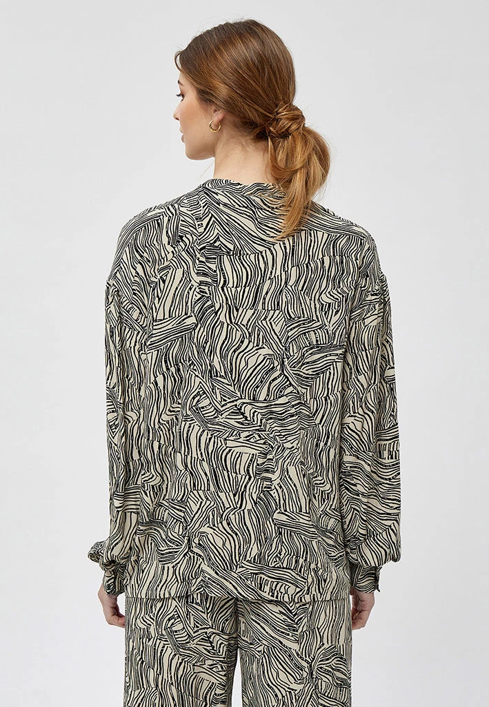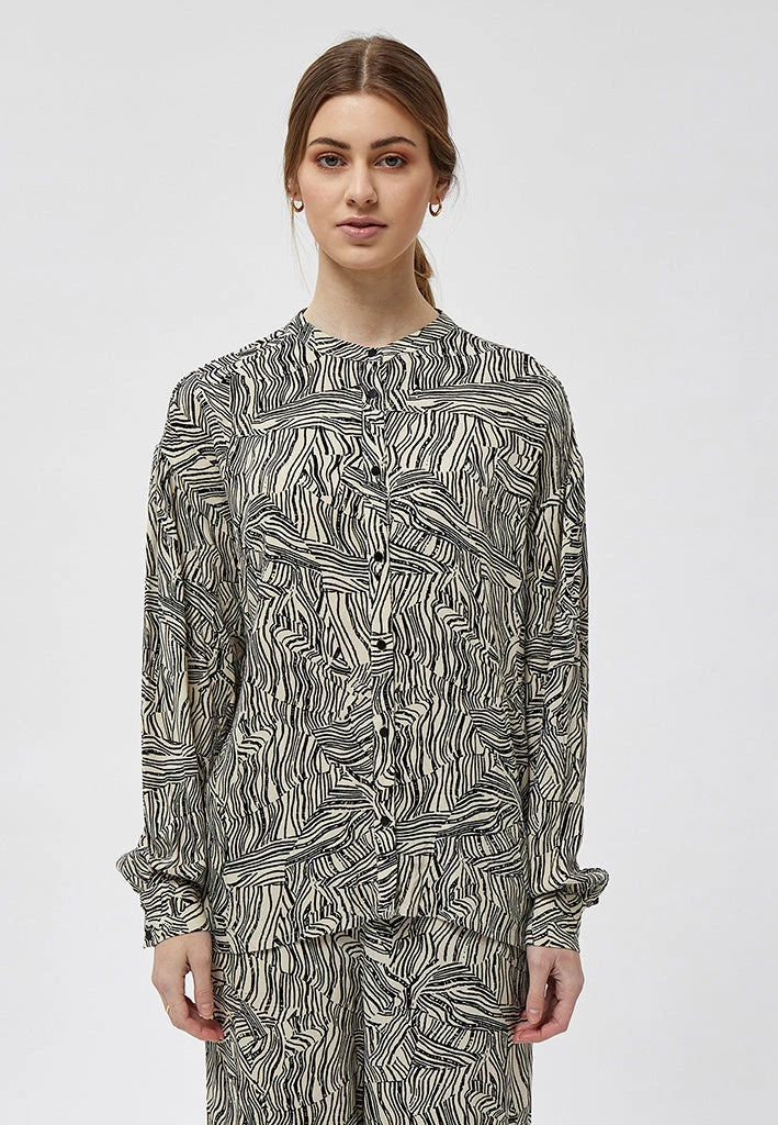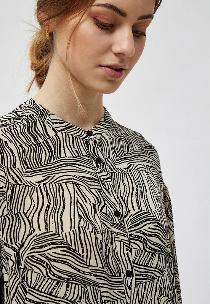 Lovely shirt without the classic collar. The shirt has a cool print. It is closed by buttons and has long sleeves with cuffs.
