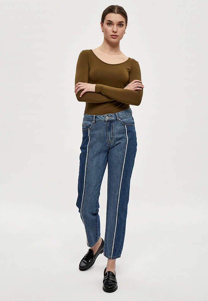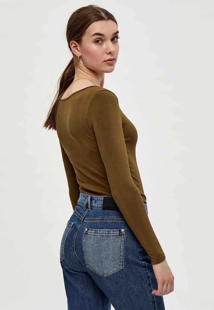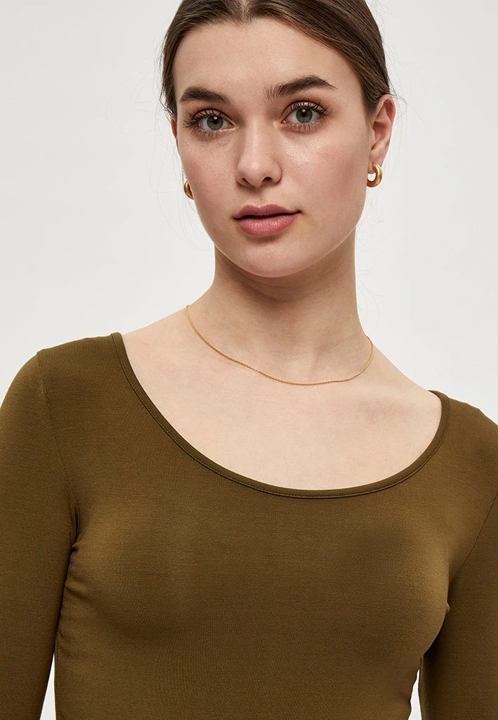 Beautiful and simple blouse. The blouse is tightly fitted. It has long sleeves and a round neck. It is easy to style with other items.