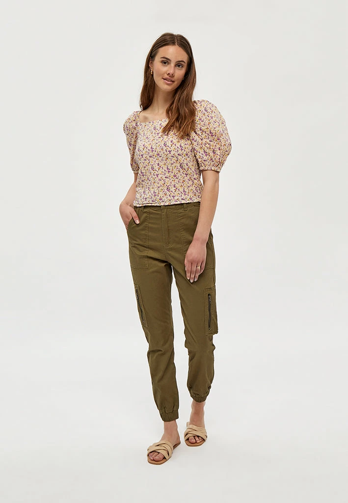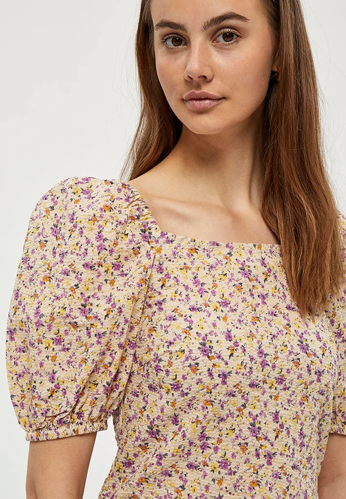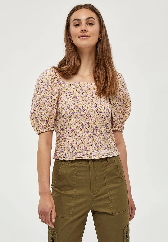 Lovely top with puf sleeves. The top has smock at the back giving it a good fit.