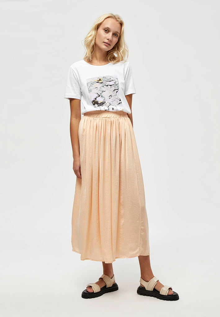 The Cam skirt is a lovely long skirt. The skirt is flowy and comfortable. At the same time it has a great fit. It has an elastic material at the waist.