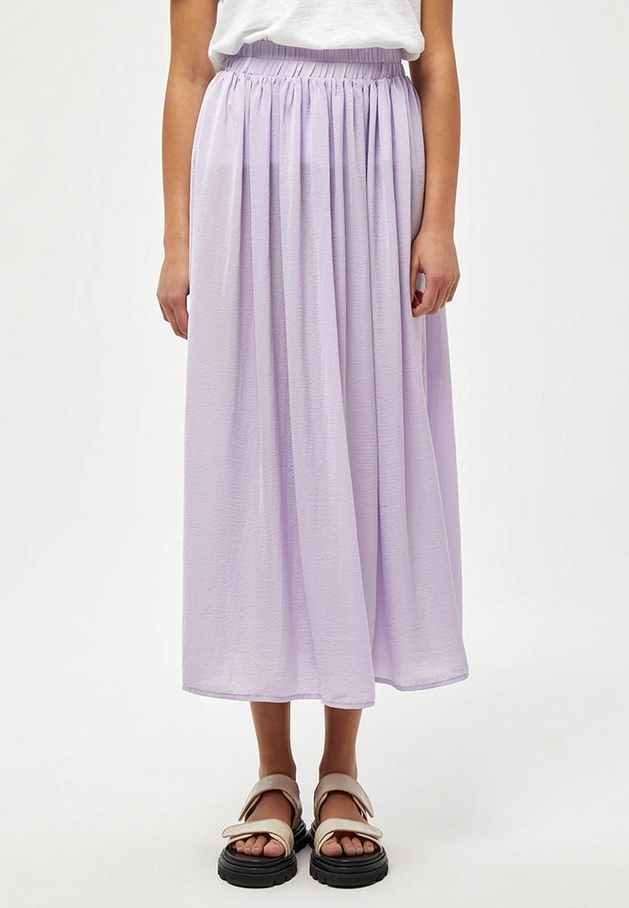 The Cam skirt is a lovely long skirt. The skirt is flowy and comfortable. At the same time it has a great fit. It has an elastic material at the waist.