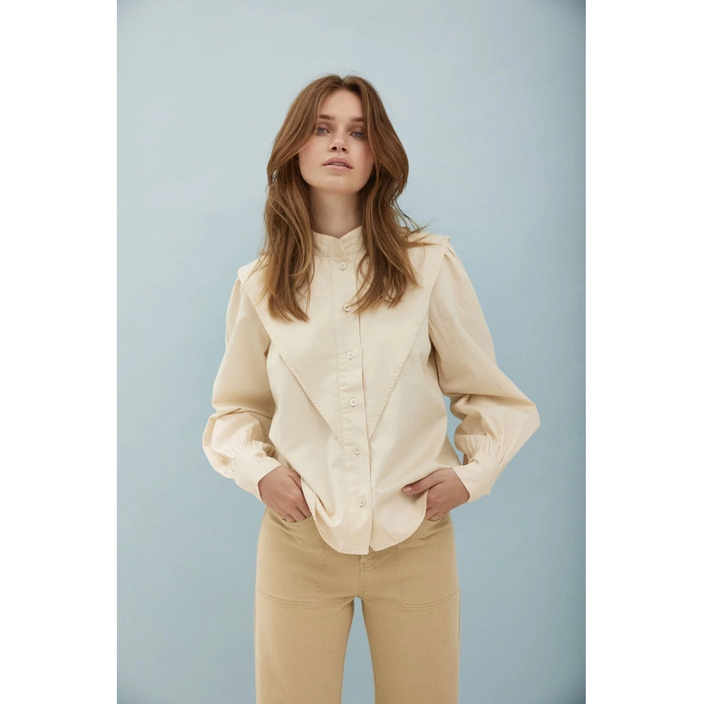 The Cameline shirt is really fashionable. The shirt has the nicest detail over the cheat area. It is closed with buttons and has a high neckline. The shirt has cuffs giving the sleeves a great look.