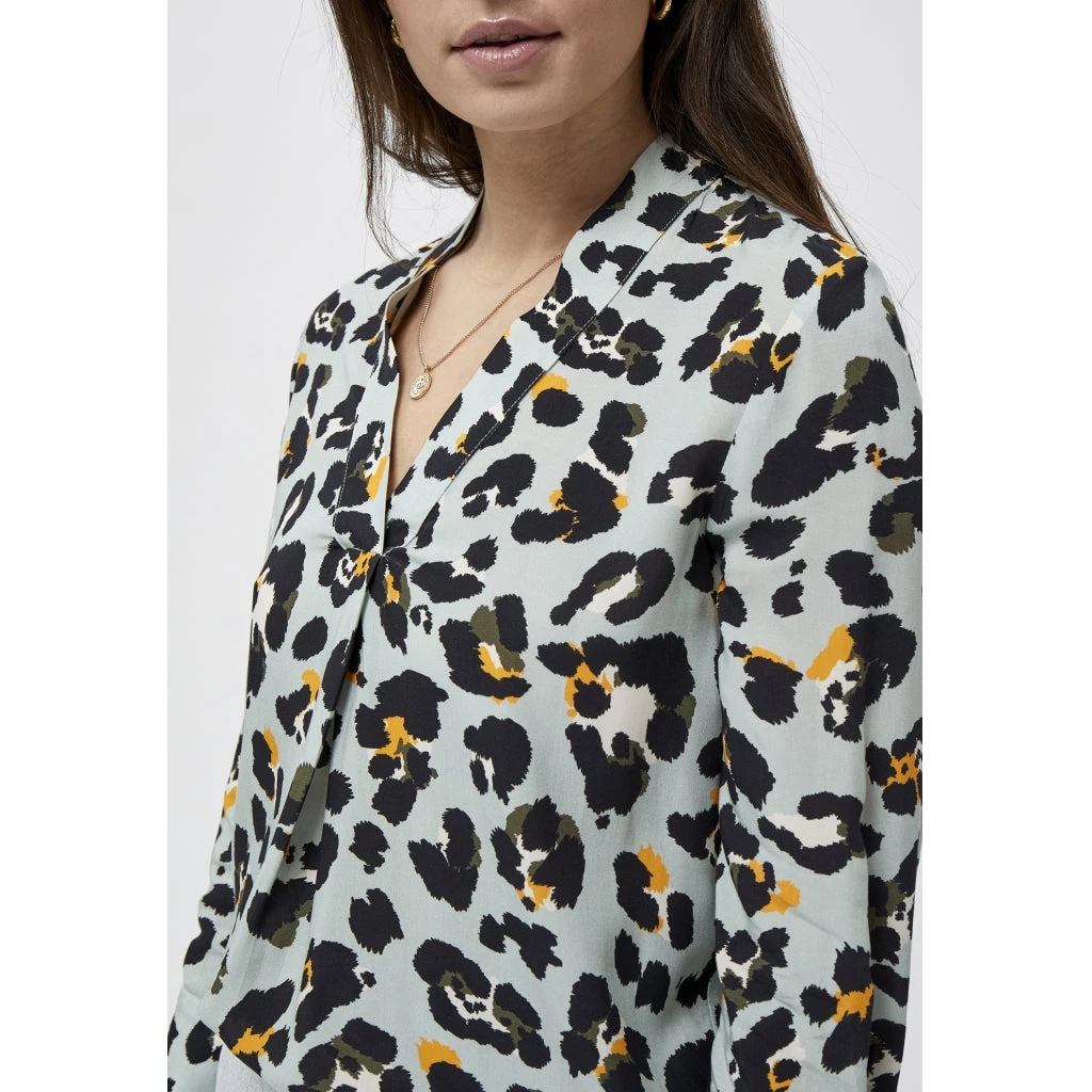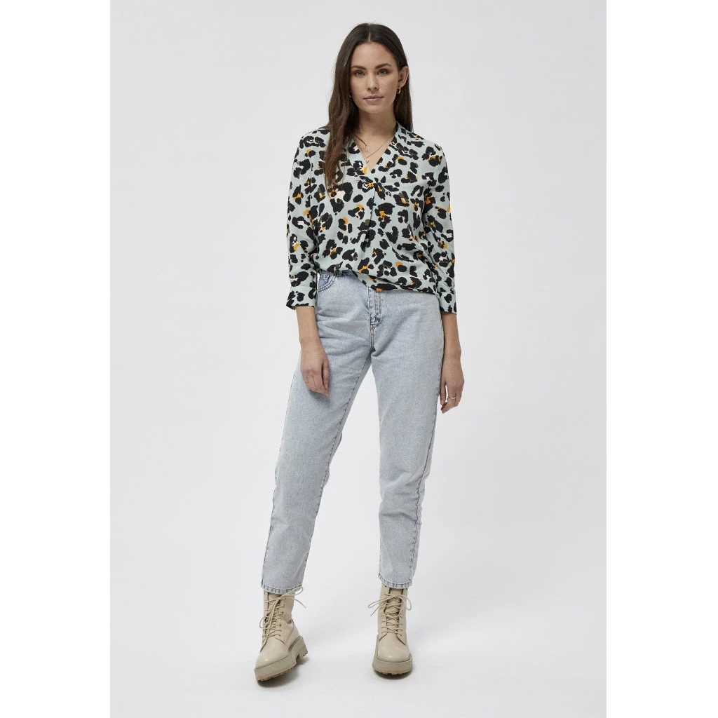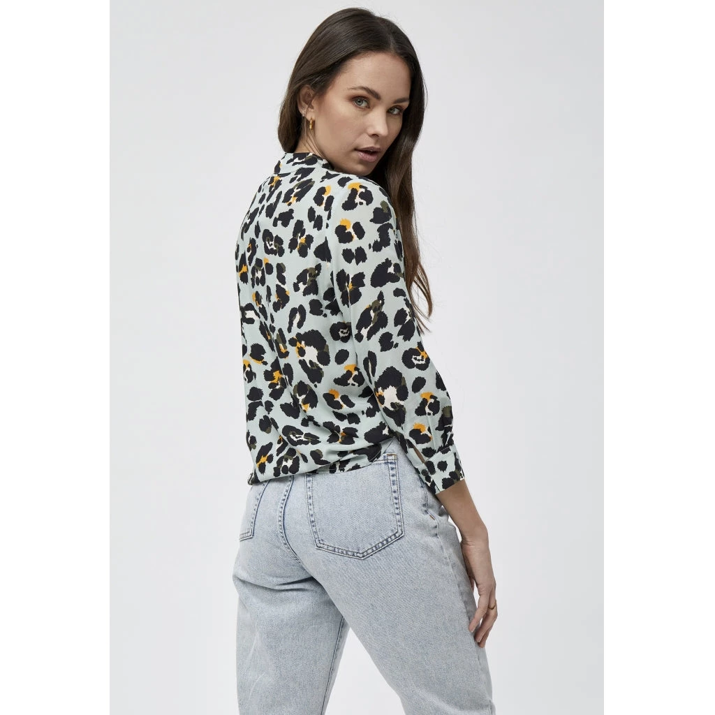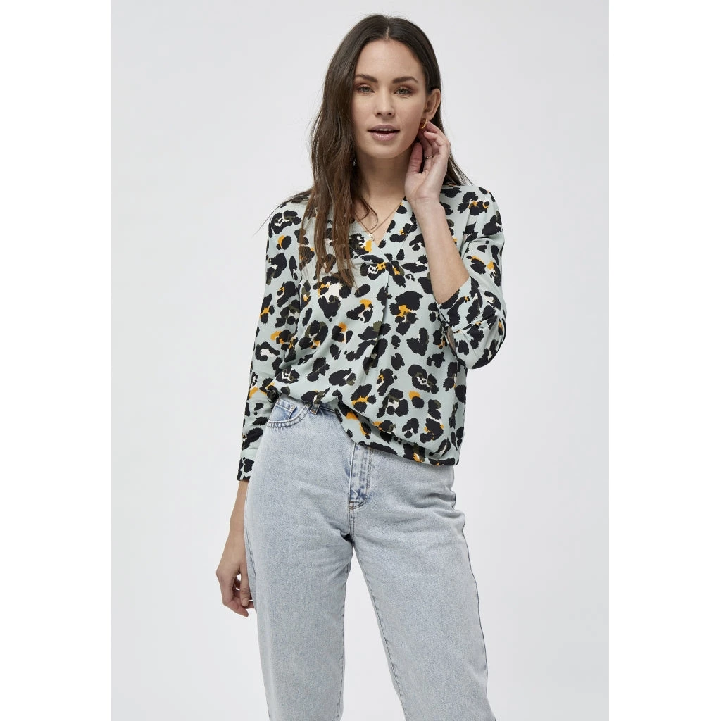 Lovely blouse with a leopard print. The blouse has a v-neck. It has 3/4 sleeves and a sleightly loose fit. The blouse can be used for an everyday look as well as a look for nicer occations.
