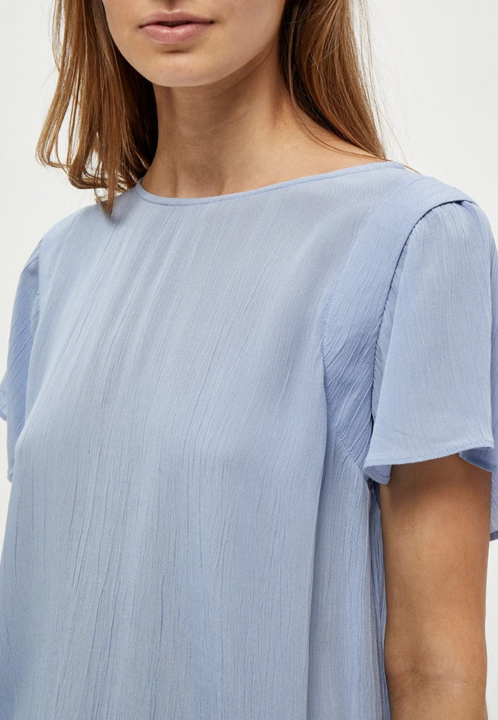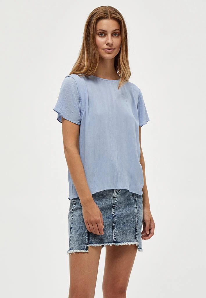 Debbi Short Sleeve Blouse is a cool blouse with texture. It has a nice detail around the shoulders and has a loose fit.