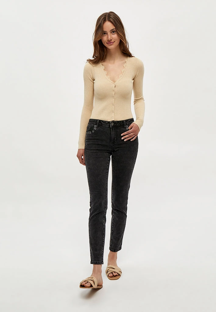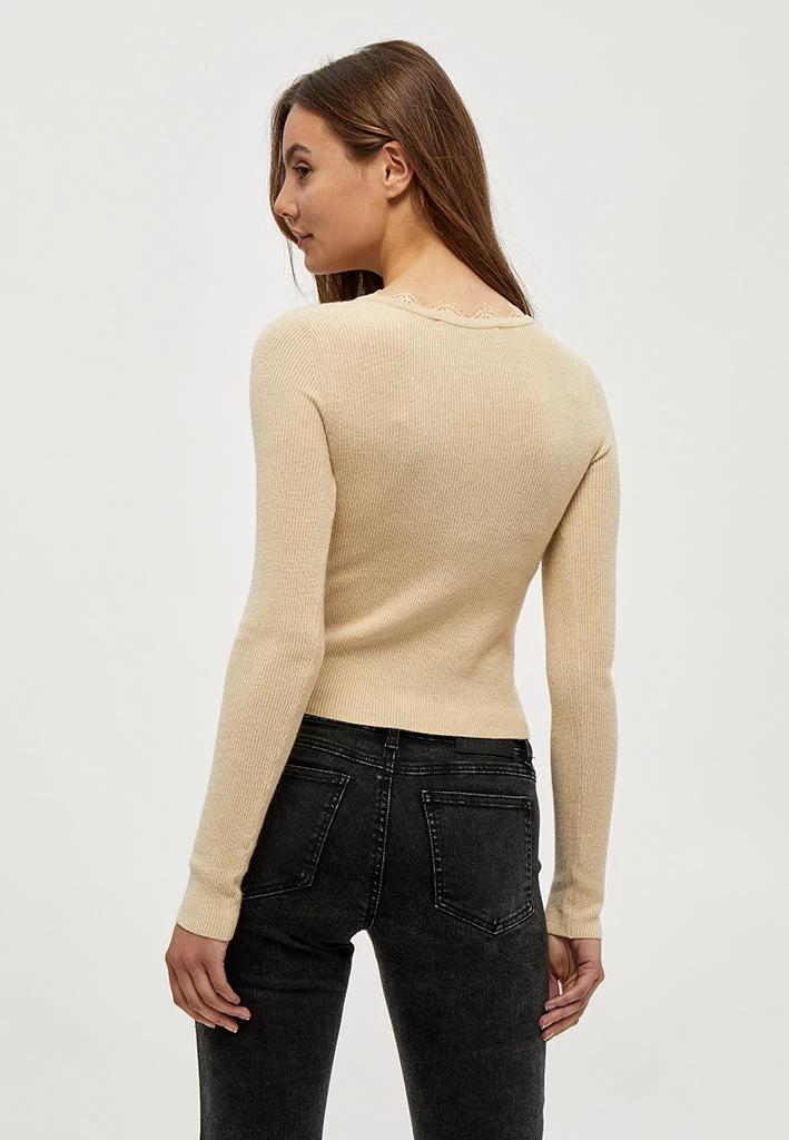 Lovely and feminin cardigan. The cardigan has long sleeves and a v-neck. It is closed by buttons and has the loveliest lace edge.