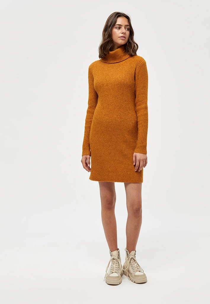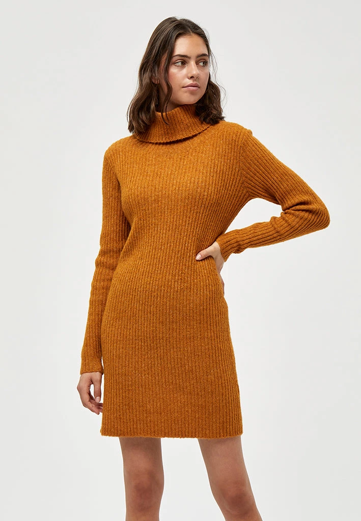 Lovely knit dress with large collar. The dress has rib. It is perfect for autumn.