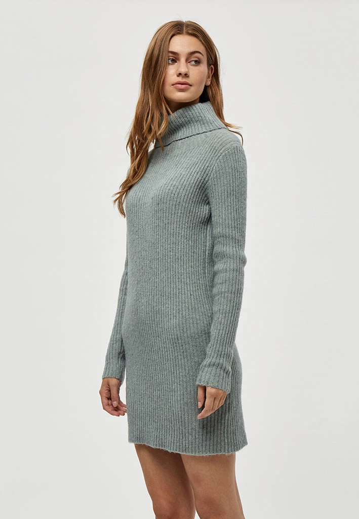 Lovely knit dress with large collar. The dress has rib. It is perfect for autumn.