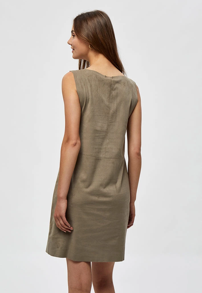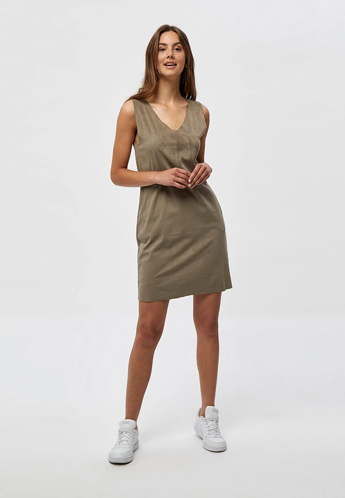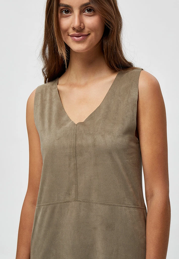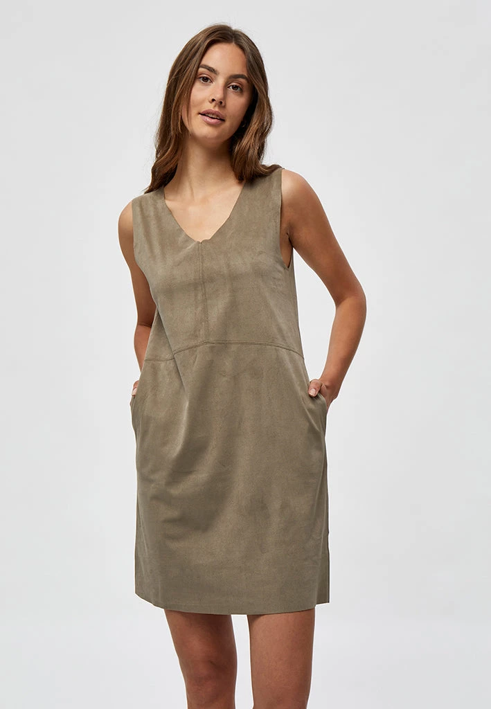 Lovely and comfortable dress. The dress has a v-neck and side pockets.