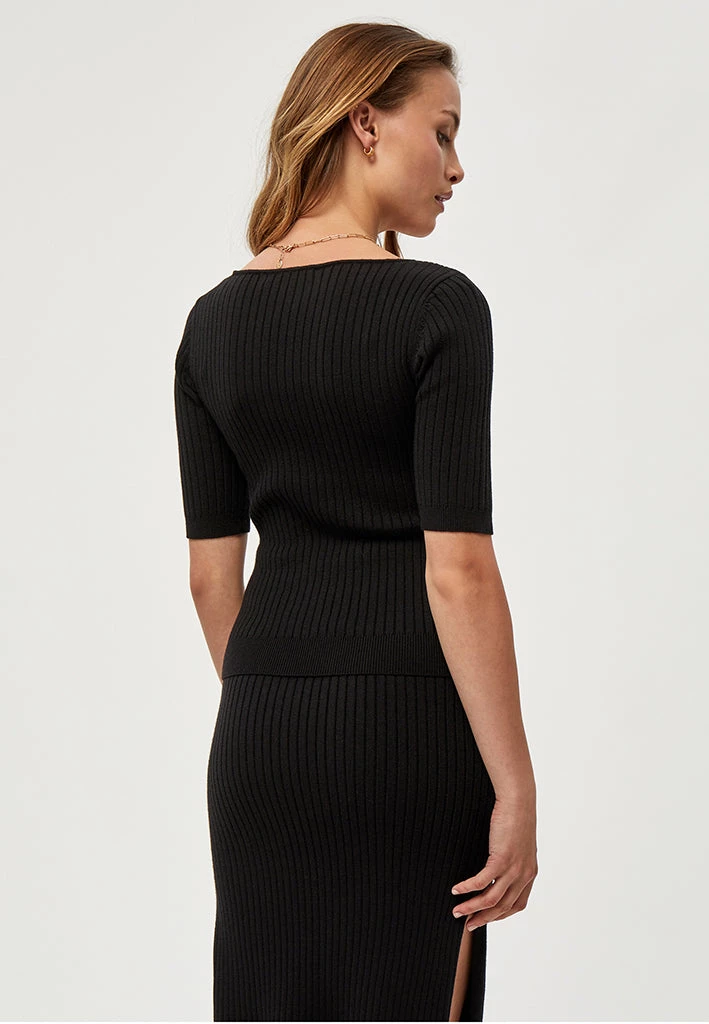 Lovely tee with a squared neckline. The tee has short sleeves and a tight fit. It has a rib pattern.
