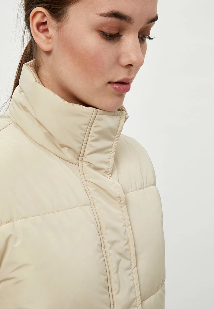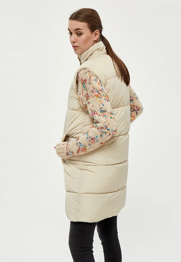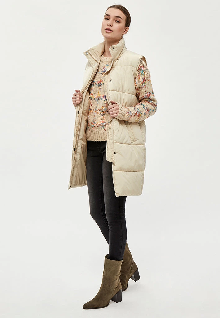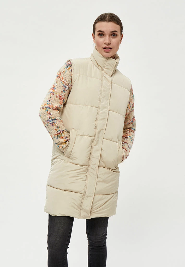 Lovely long jacket without sleeves. The vest has side pockets and a high neck. It is closed by buttons.