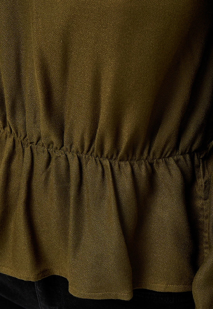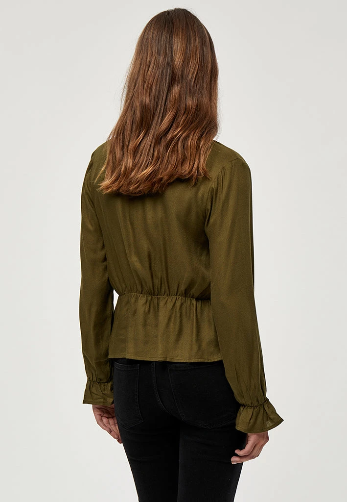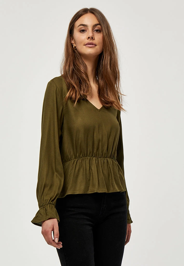 Beautiful blouse with a v-neck. The blouse is tighter at the waist and wrists giving the blouse a good fit. It has a lovely flower print.