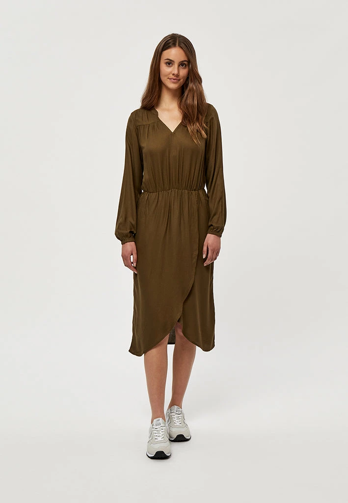 Beautiful dress with a lovely flower print. The dress has a v-neck and long sleeves. The dress has a slit at the bottom.