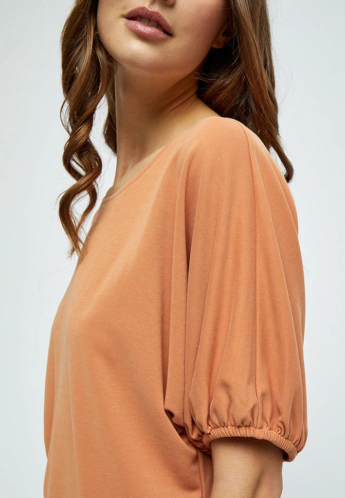 Nice blouse with lovely sleeves. The blouse has short sleeves and a round neck. It is easy to style with any bottom.
