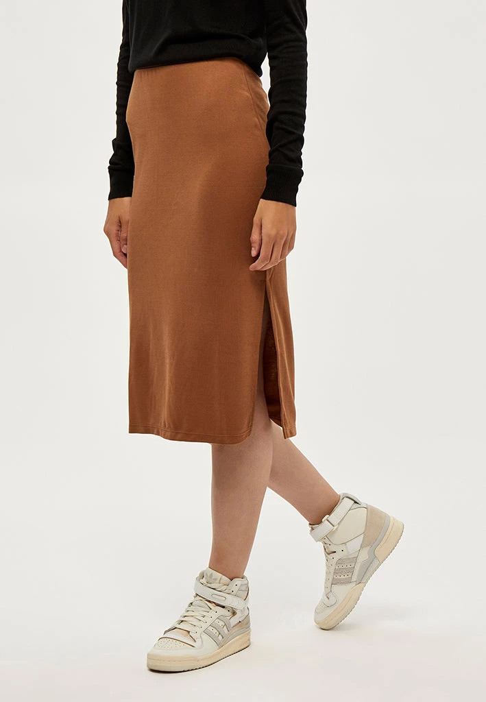 Lovely long skirt. The skirt has a tight fit and a slit in the side. It is easy to style with any top.