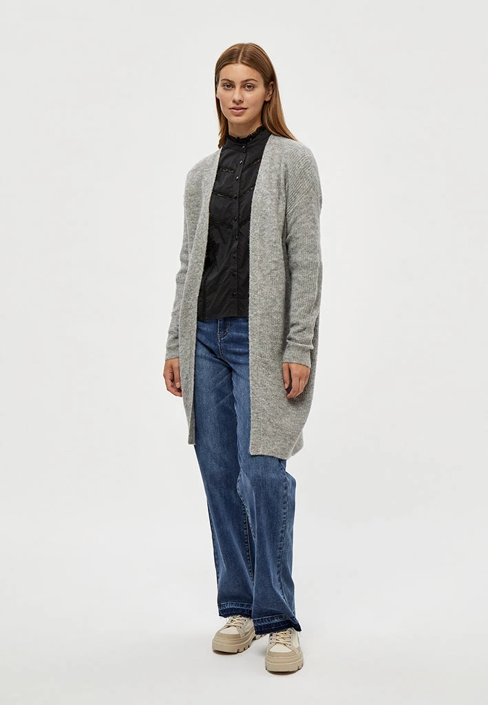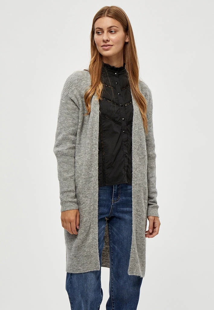 Lovely long cardigan. The cardigan is open and has long sleeves. It is perfect for chilly days.