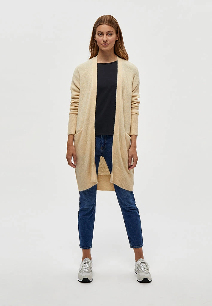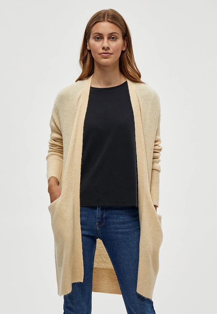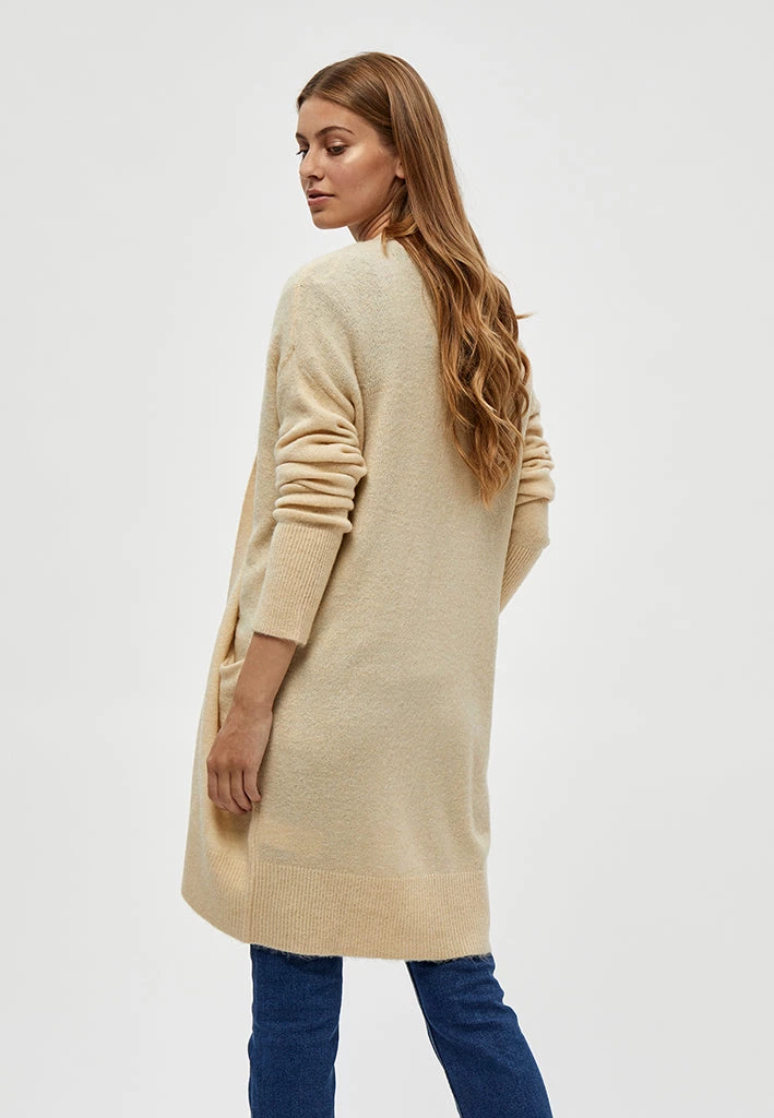 Lovely long cardigan. The cardigan is open and has long sleeves. It is perfect for chilly days.