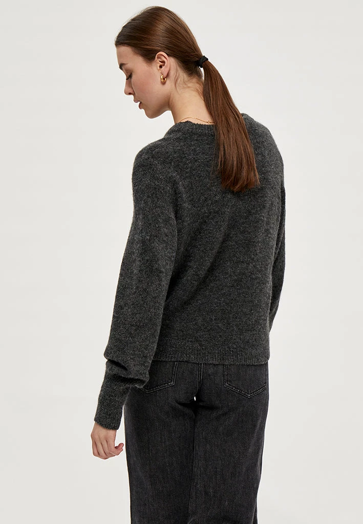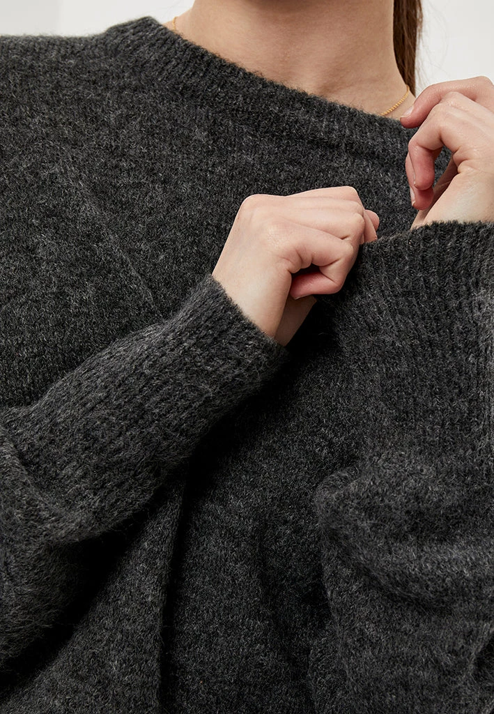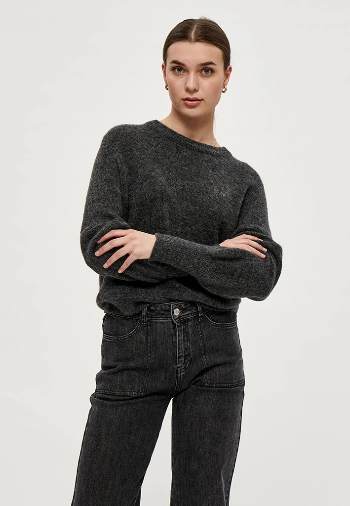 Lovely pullover with an o-neck. The pullover has slightly volumious sleeves with high cuffs. The pullover is easy to style with any bottom.