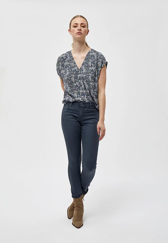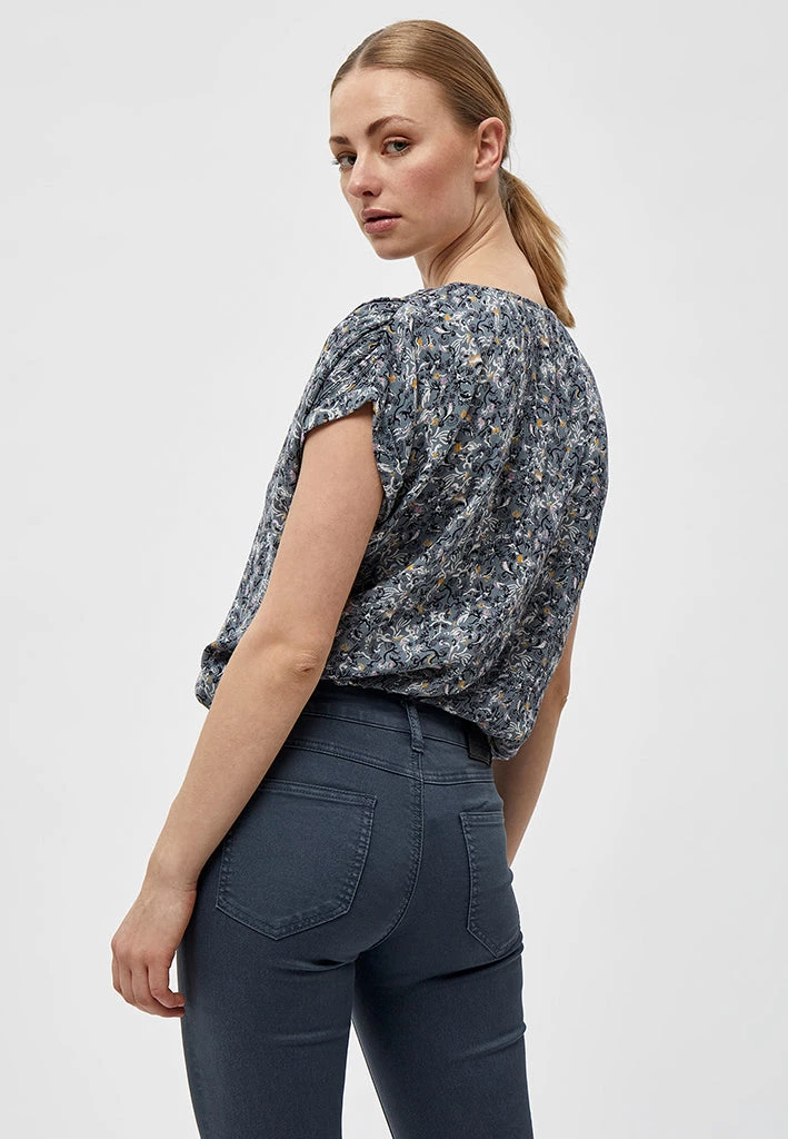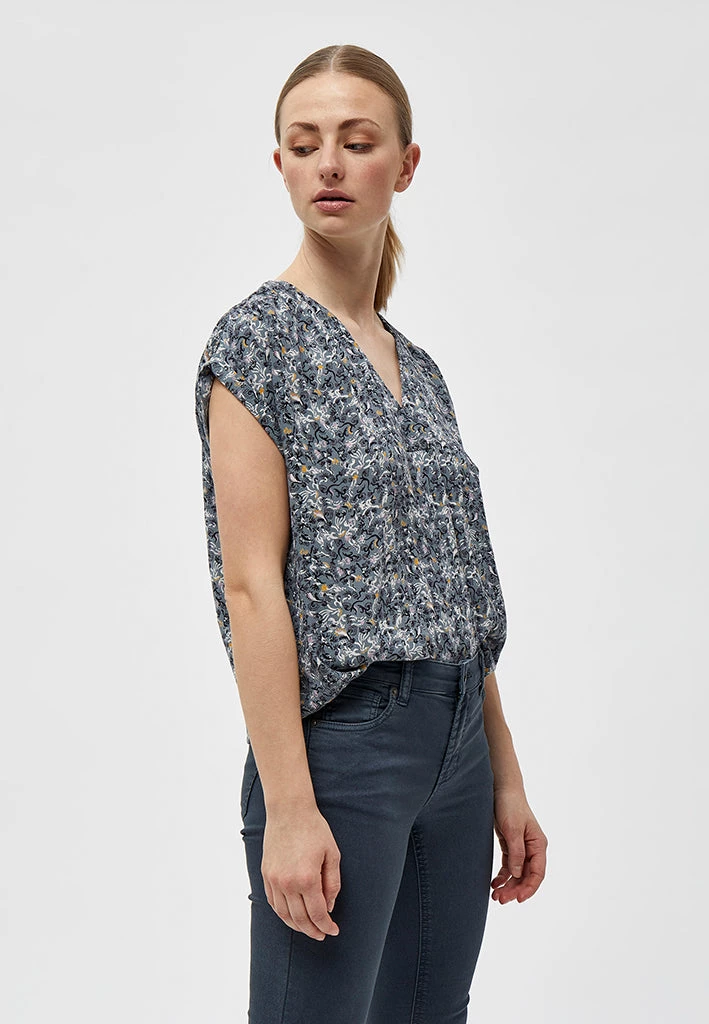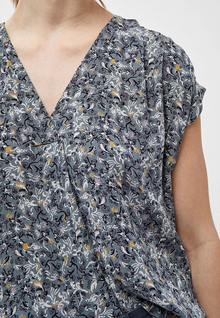 Lovely top with a beautiful pattern. The top has a v-neck and short sleeves. The sleeves have a nice detail.