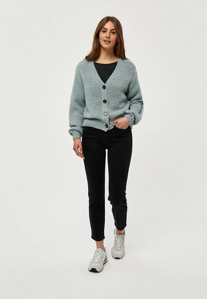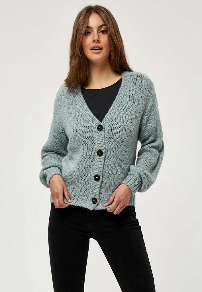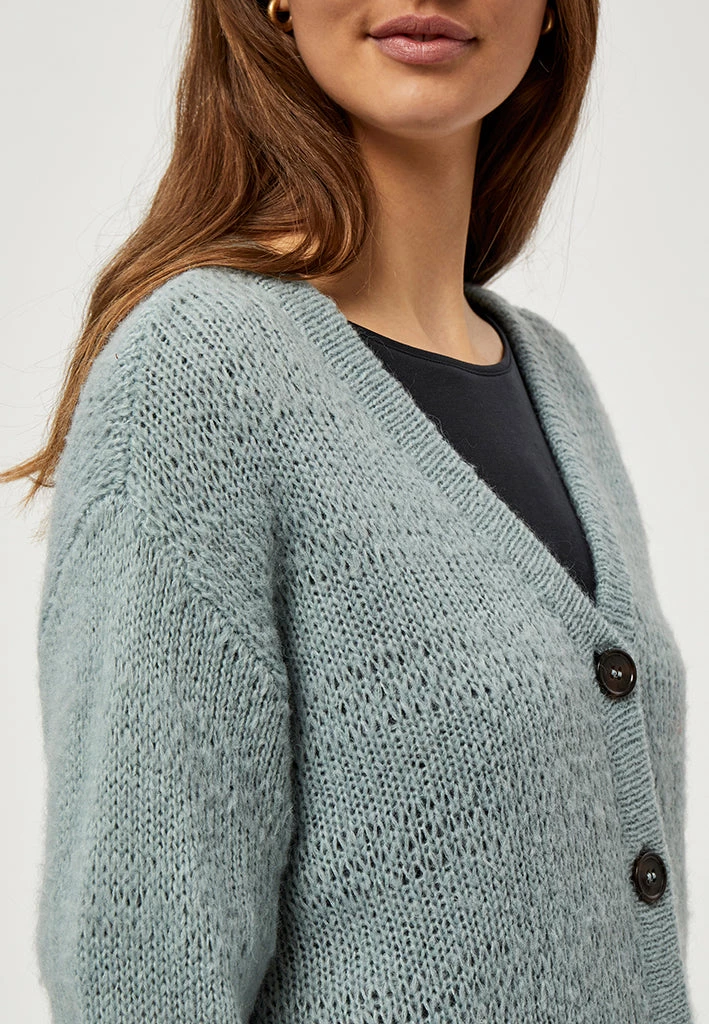 Lovely and comfortable knit cardigan. The cardigan has a v-neck and is closed by buttons. It has rib at the edges.