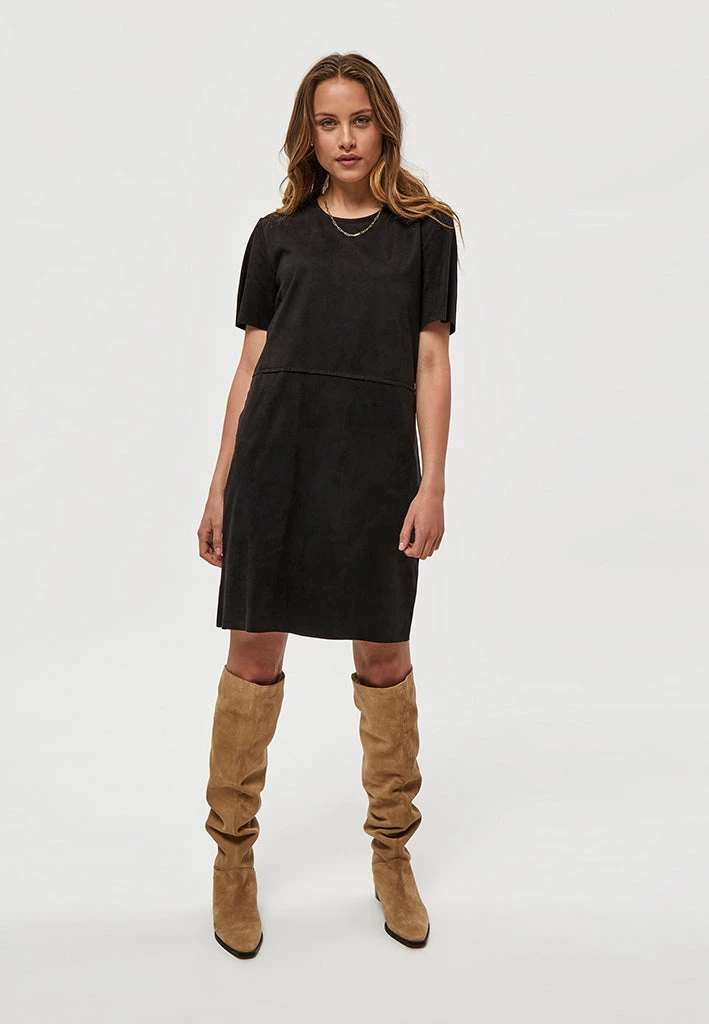 Lovely dress with short sleeves and a round neck. The dress has side pockets. It can be used for everyday purposes or for nicer events.