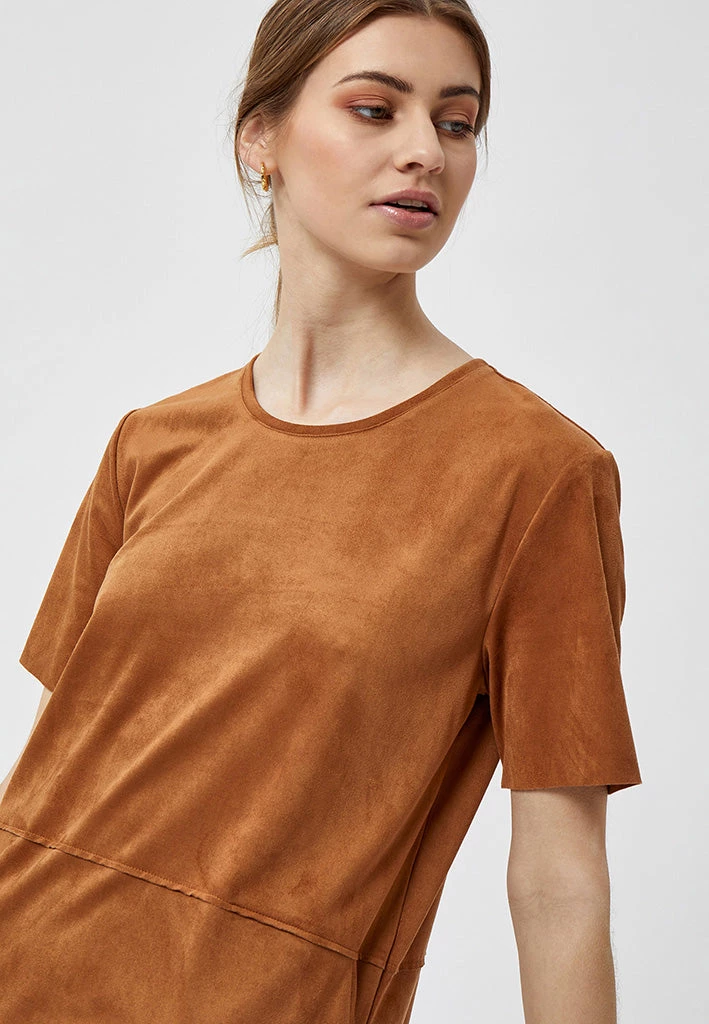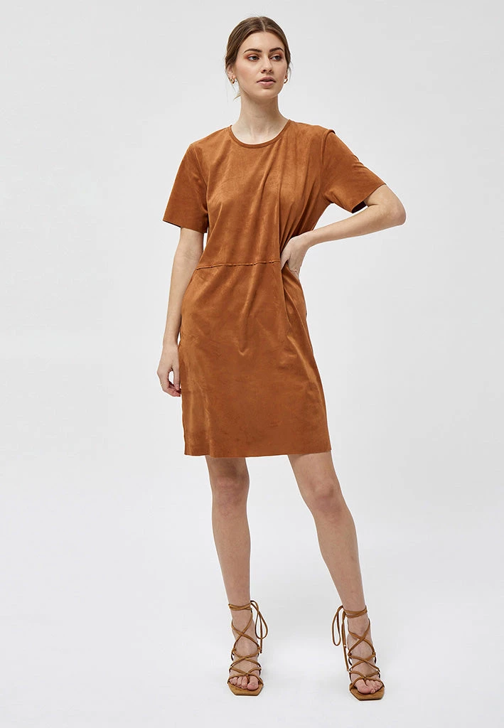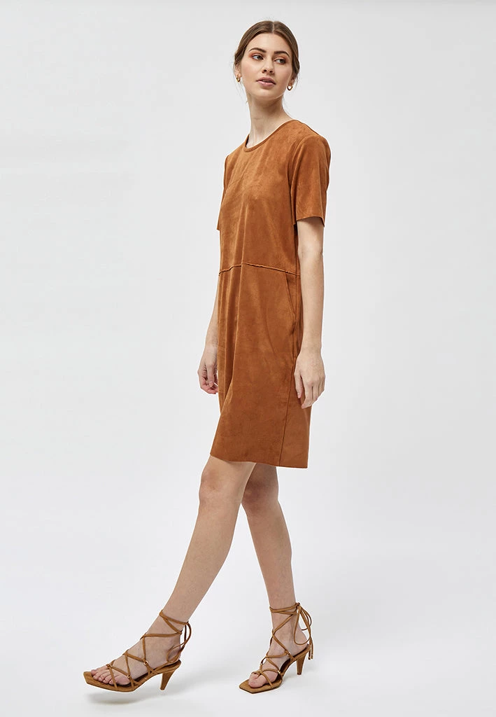 Lovely dress with short sleeves and a round neck. The dress has side pockets. It can be used for everyday purposes or for nicer events.