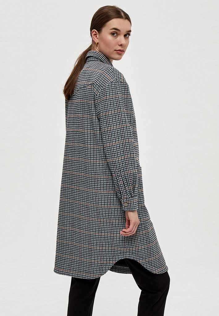Beautiful and stylish jacket. The jacket has a collar, long sleeves and big pockets. It has a lovely pattern. The jacket has a button closure.