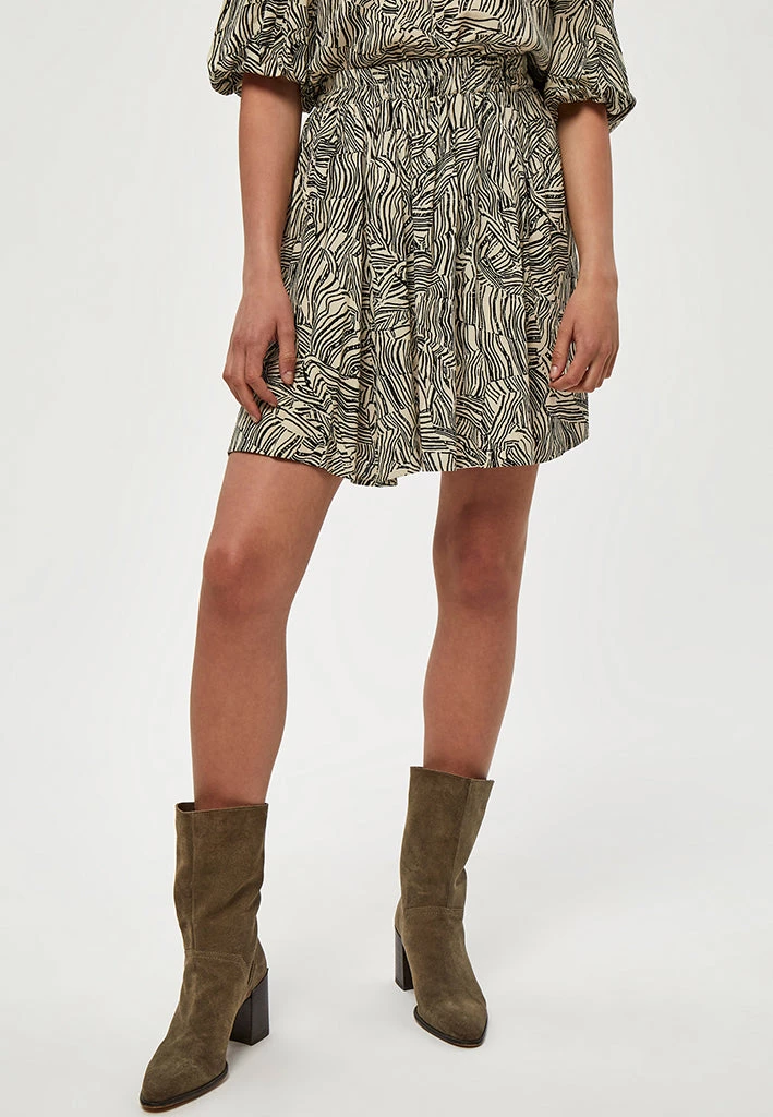Lovely skirt with beautiful print. The skirt is flowy and has an elastic waist.