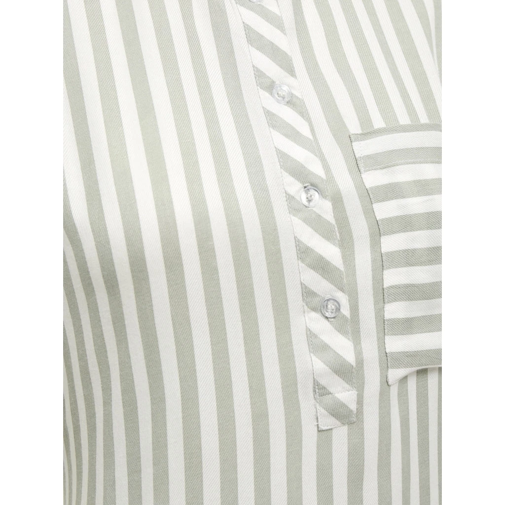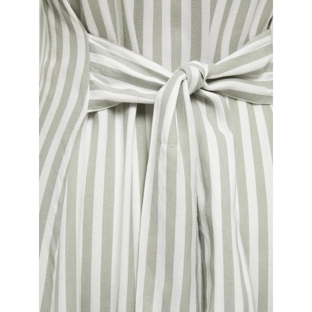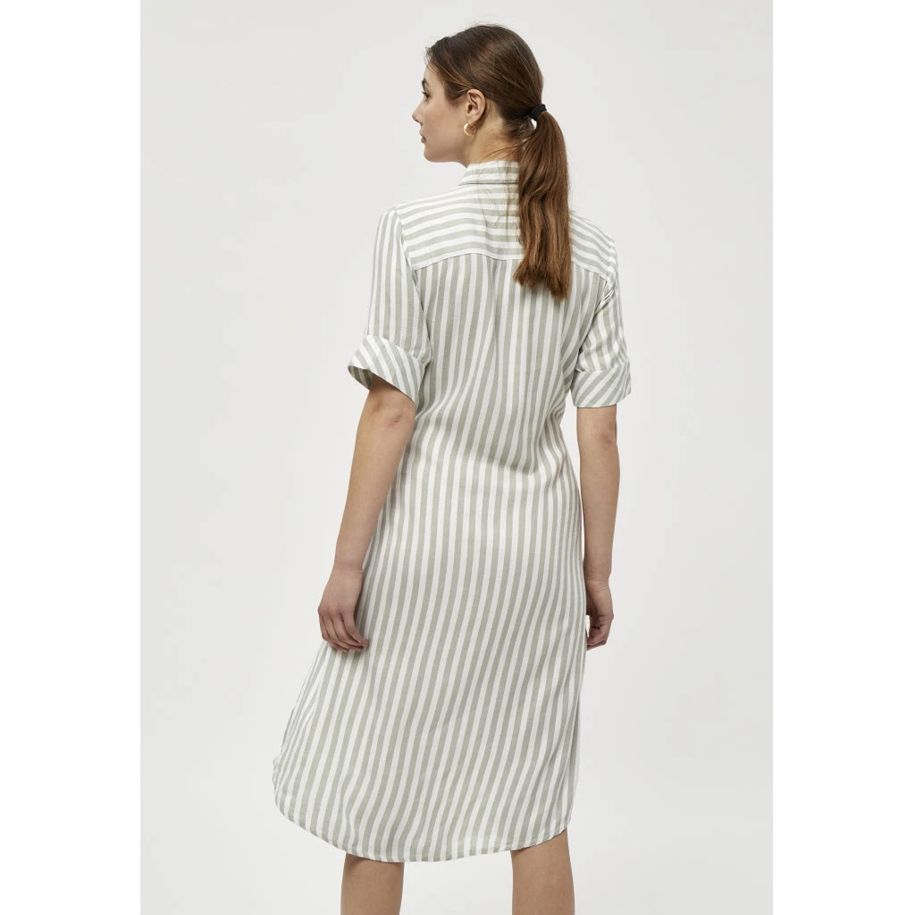 The dress has a shirt collar, button-down front half, single chest pocket, short sleeves and tie-waist in the back – and did we mention that Fenny is a striped beauty?