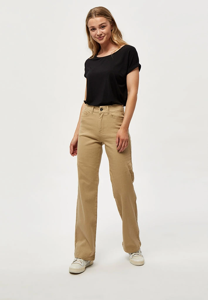 The Florence jeans are really cool and fashionable. The jeans have broad legs, are closed by a zipper and button and have beltstraps. They can easily be styled with almost any top.