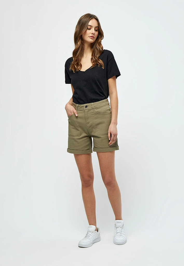 The Florence shorts are lovely. The shorts have belt straps, a button, front pockets and back pockets. The shorts are folded up at the bottom. They are perfect for sunny days.