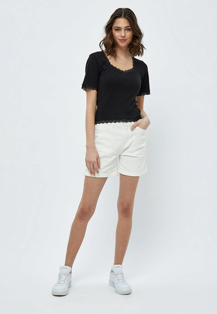 The Florence shorts are lovely. The shorts have belt straps, a button, front pockets and back pockets. The shorts are folded up at the bottom. They are perfect for sunny days.