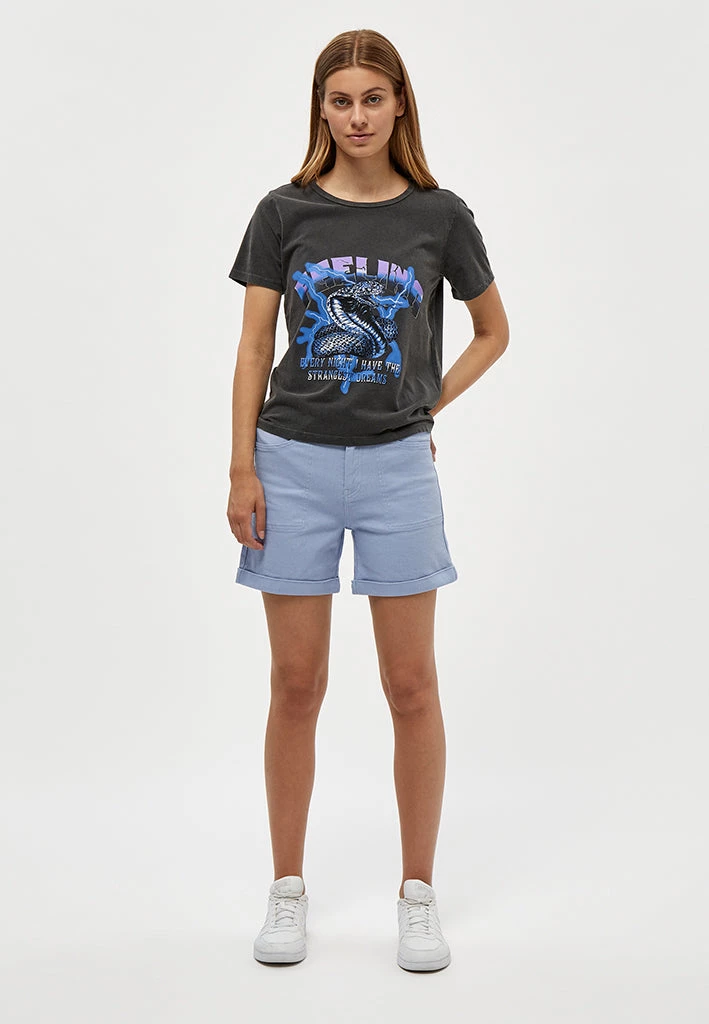 The Florence shorts are lovely. The shorts have belt straps, a button, front pockets and back pockets. The shorts are folded up at the bottom. They are perfect for sunny days.