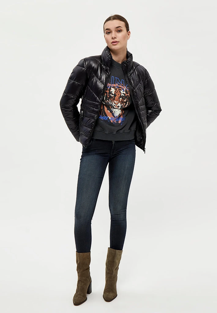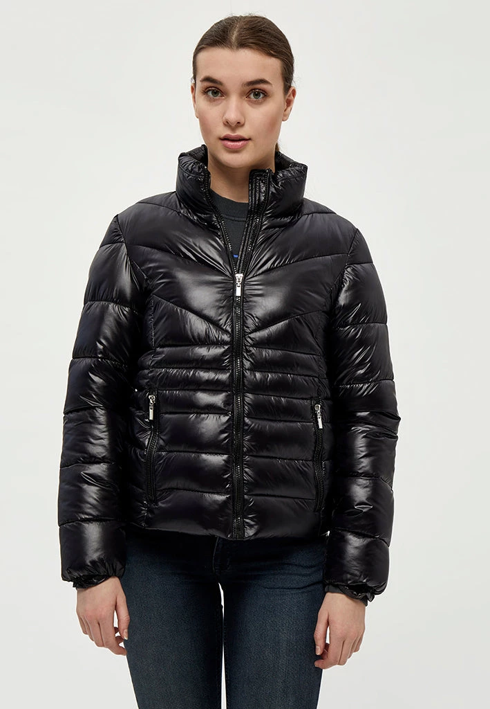 Lovely and comfortable jacket for autumn. The jacket has a high neck and side pockets. The pockets and the jacket is closed by zipper.
