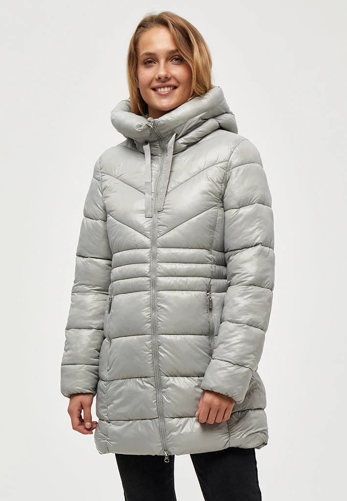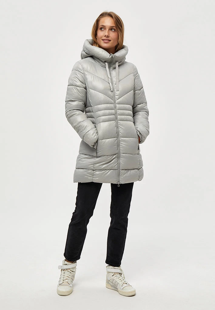 Lovely and comfortable jacket for autumn. The jacket has side pockets and a high neck with strings. The pockets and the jacket is closed by zipper.