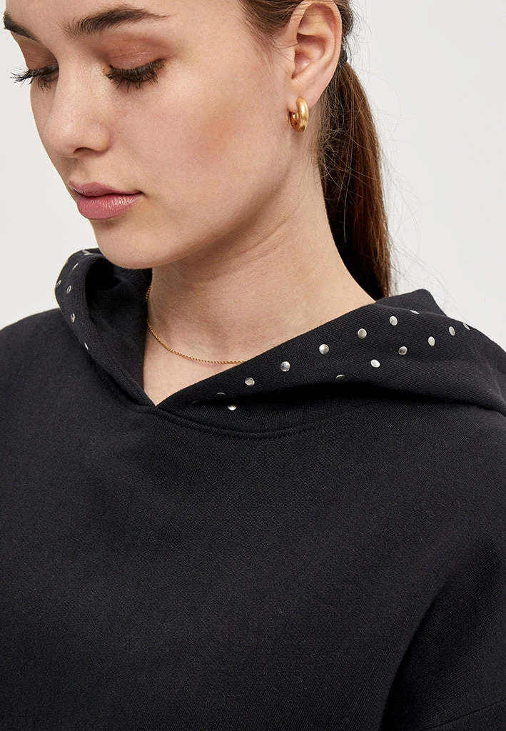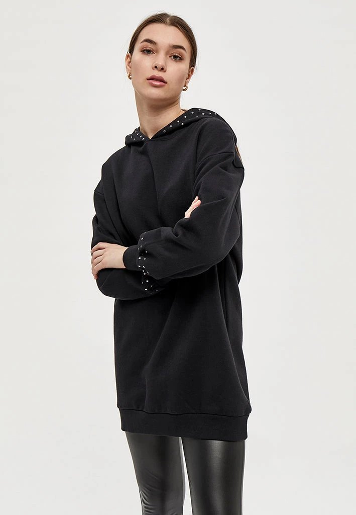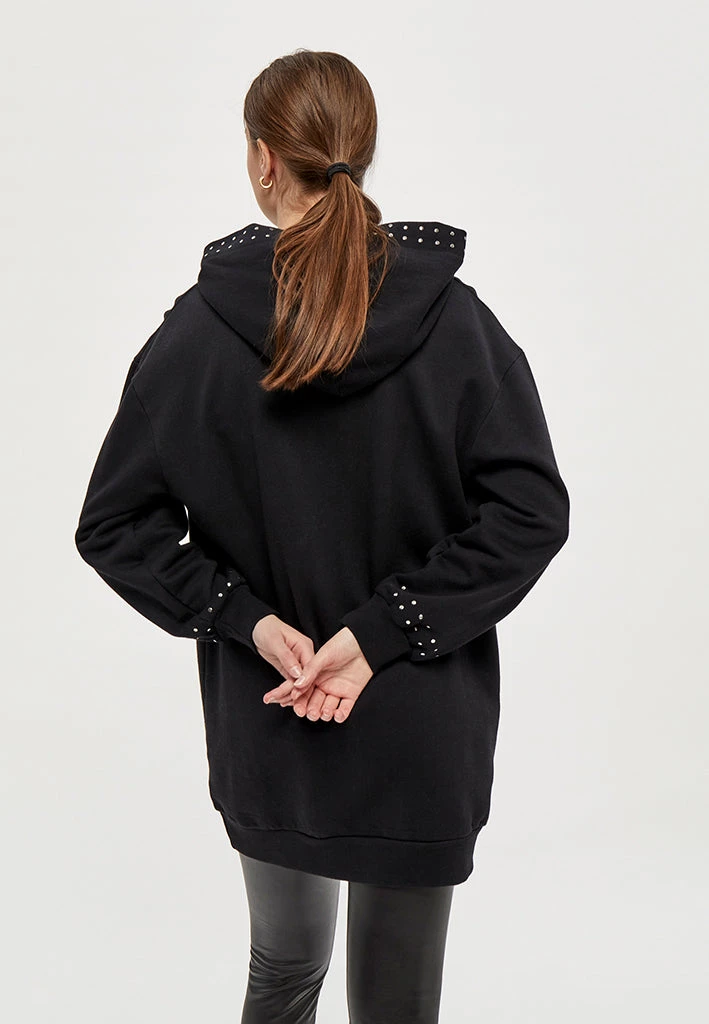 Cool long hoodie. The hoodie has long sleeves and stone details.
