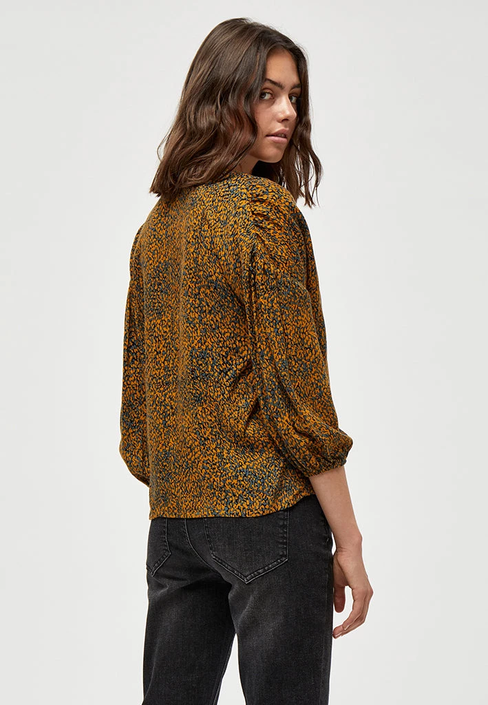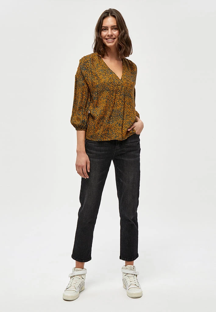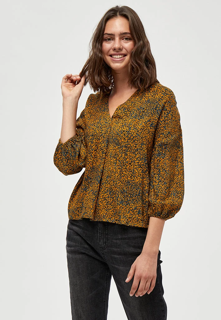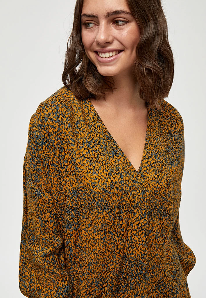 Lovely top with beautiful print. The top has a v-neck and long sleeves.