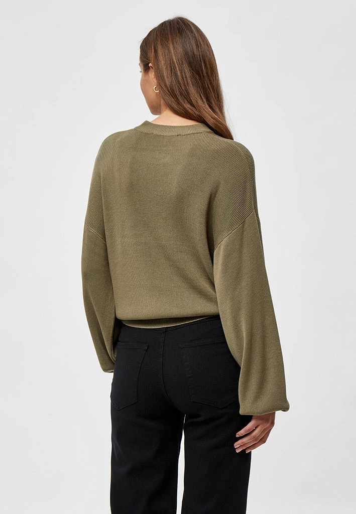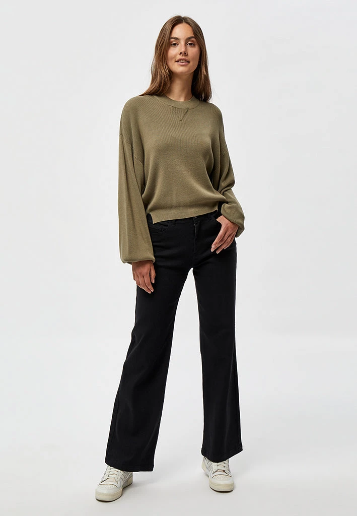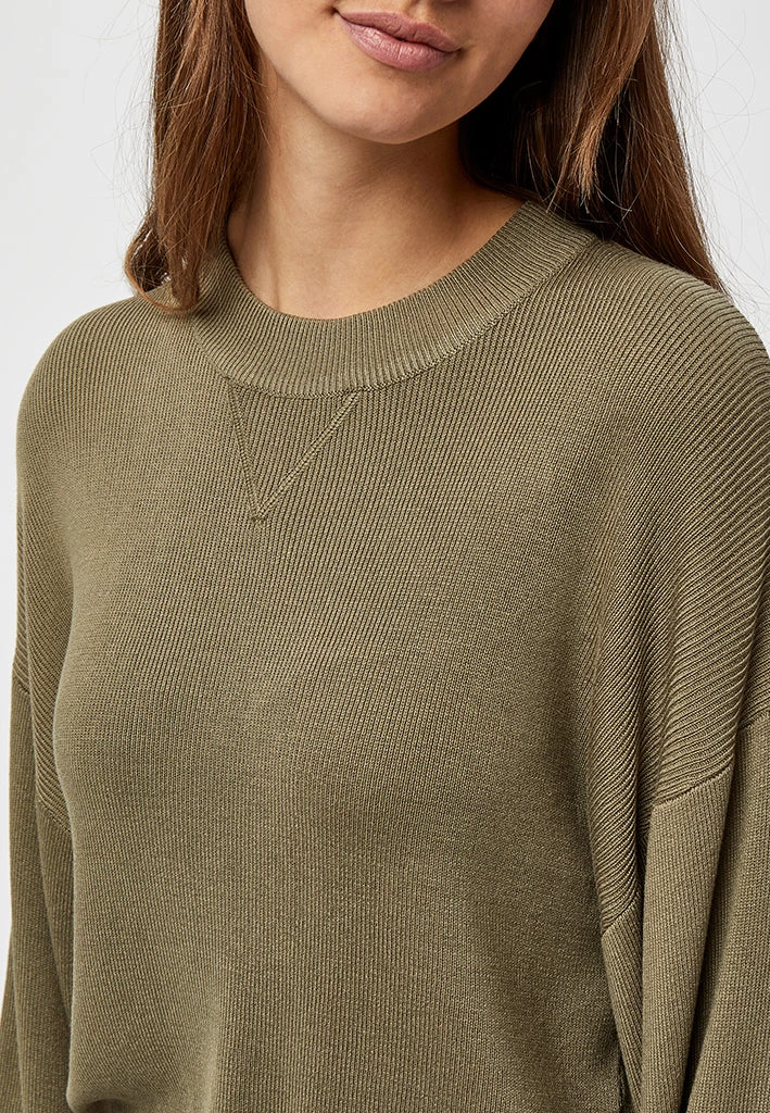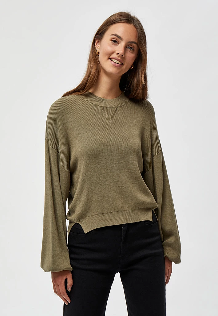 Lovely knit pullover with a round neck. The knit has rib edges and slits at the sides at the bottom. It has long sleeves and is easy to style.