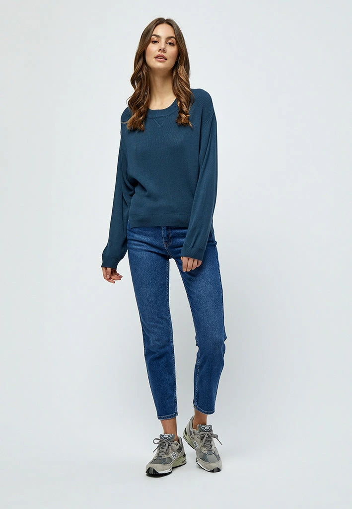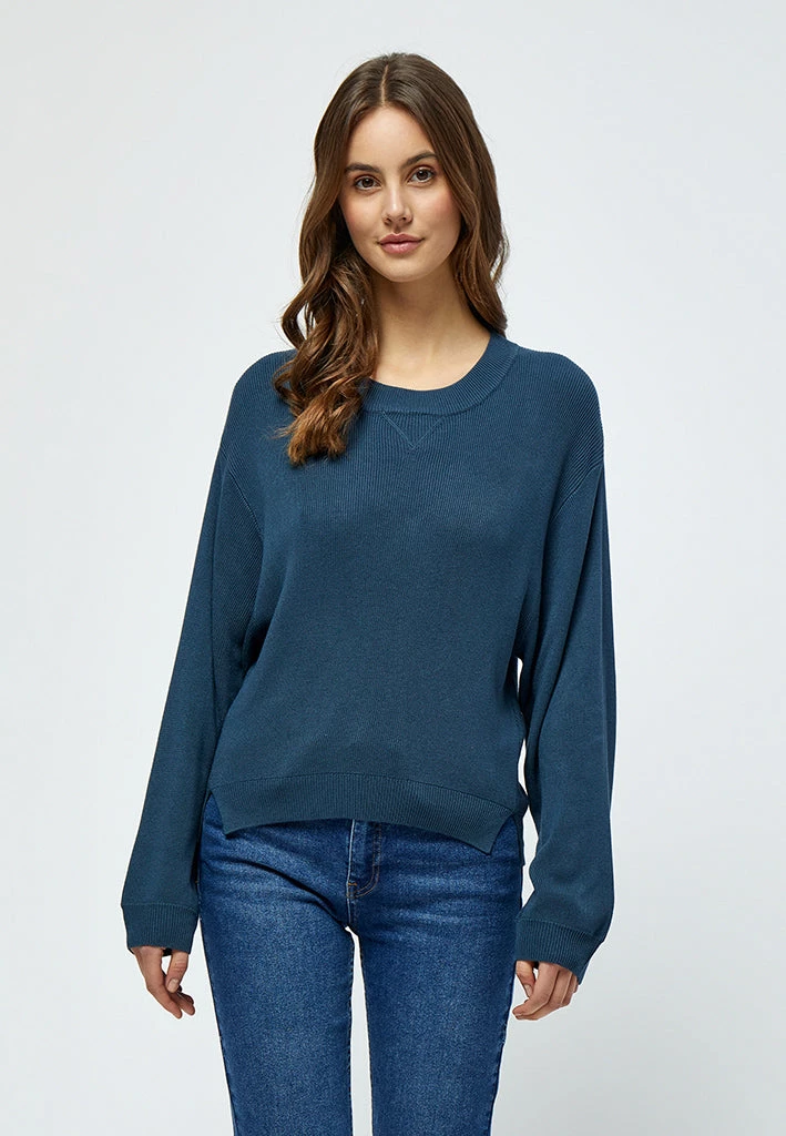 Lovely knit pullover with a round neck. The knit has rib edges and slits at the sides at the bottom. It has long sleeves and is easy to style.