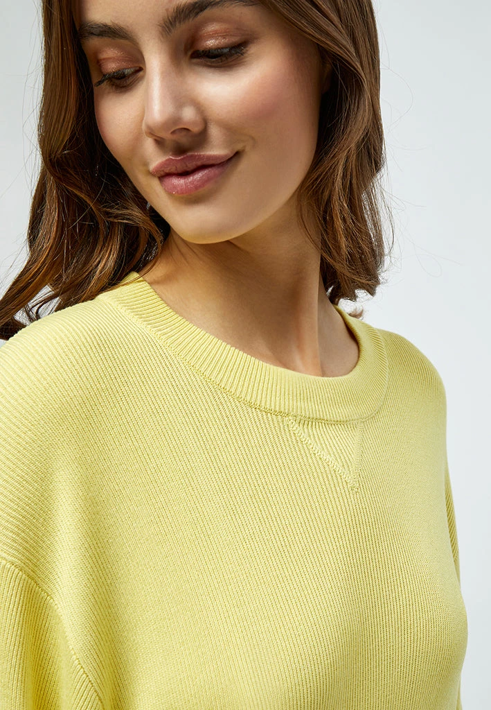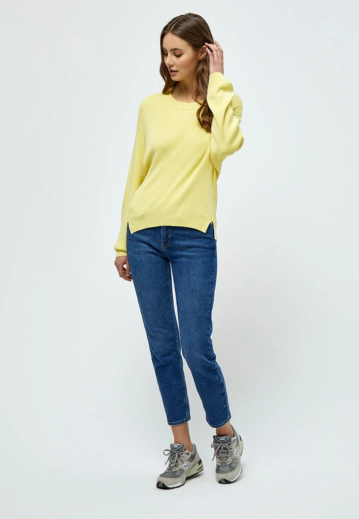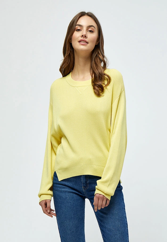 Lovely knit pullover with a round neck. The knit has rib edges and slits at the sides at the bottom. It has long sleeves and is easy to style.