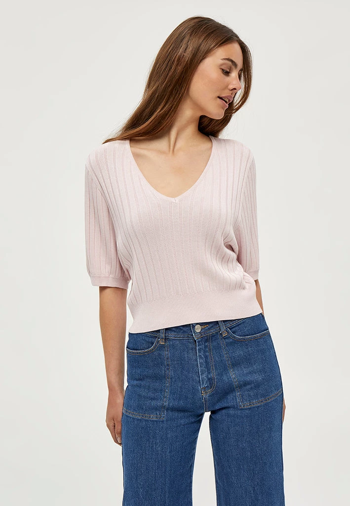 Lovely pullover with rib. It has short sleeves and a v-neck. A must have in everyones wardrobe.