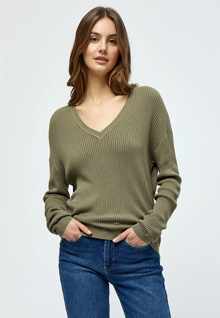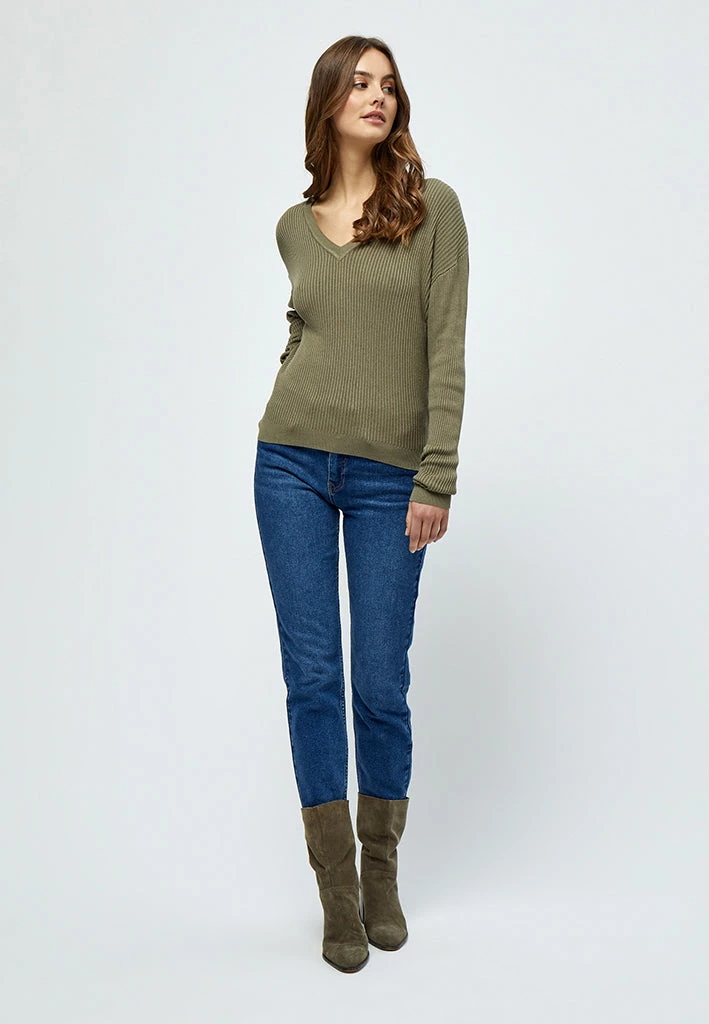 Basic long sleeve pullover. The pullover is ribbed and has a regular fit.