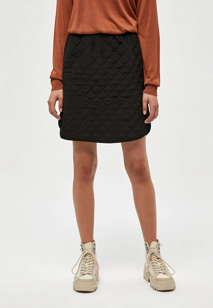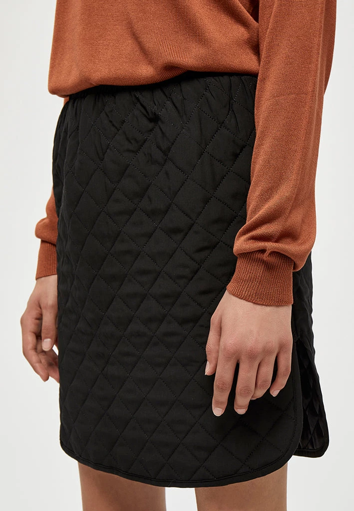 Cool green skirt. The skirt is quilted and perfect for autumn. It is tighter at the waist giving it a good fit. It has a slit at the side.