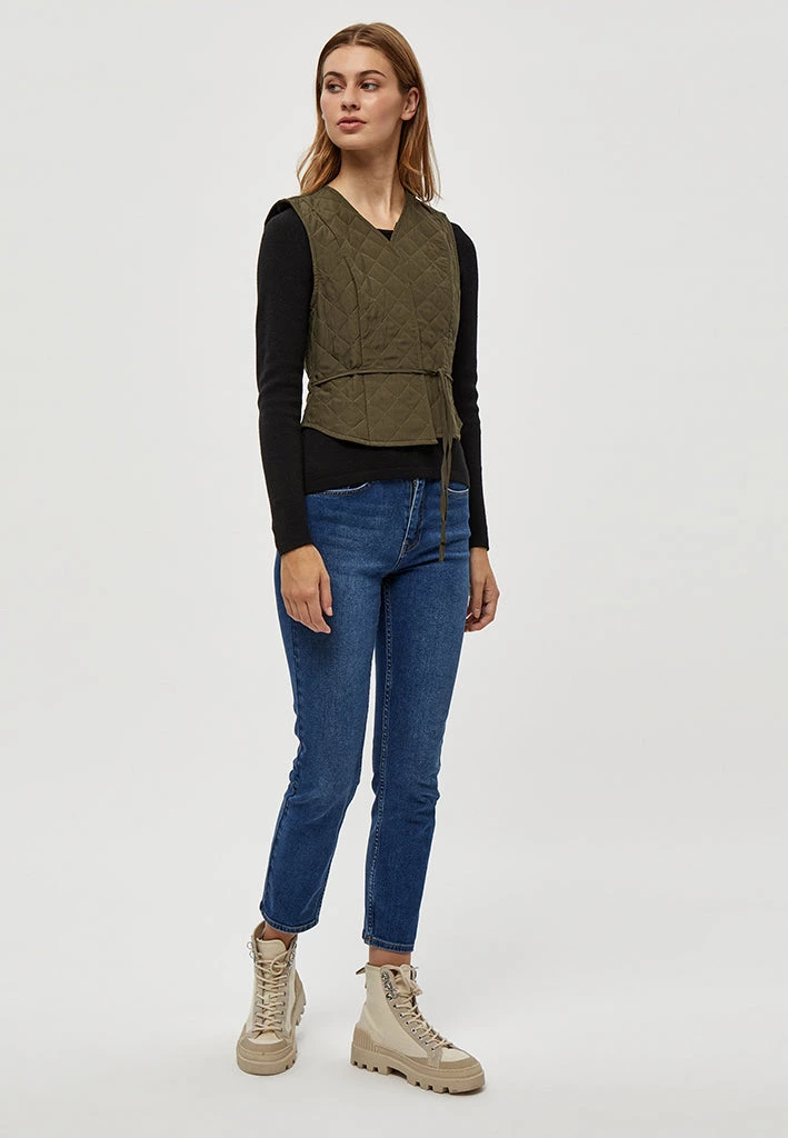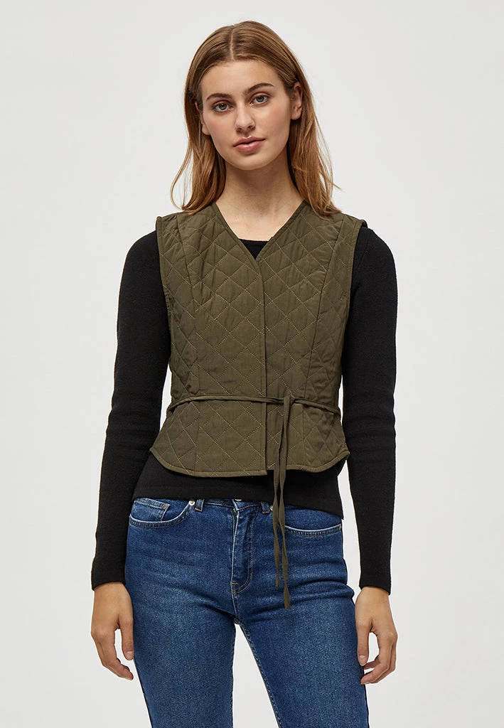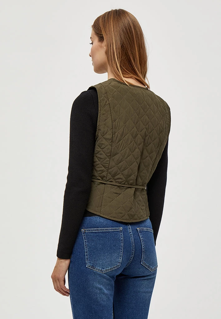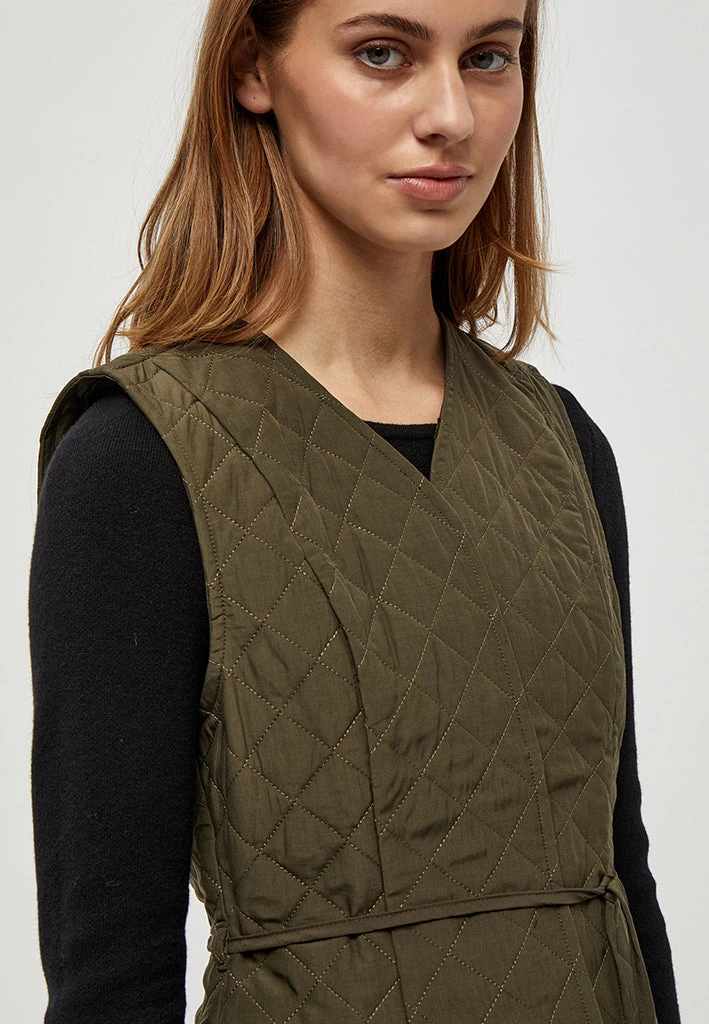 Lovely green vest in a quilted quality. The vest is super cool for autumn. It can be used with or without the removable belt at the waist.