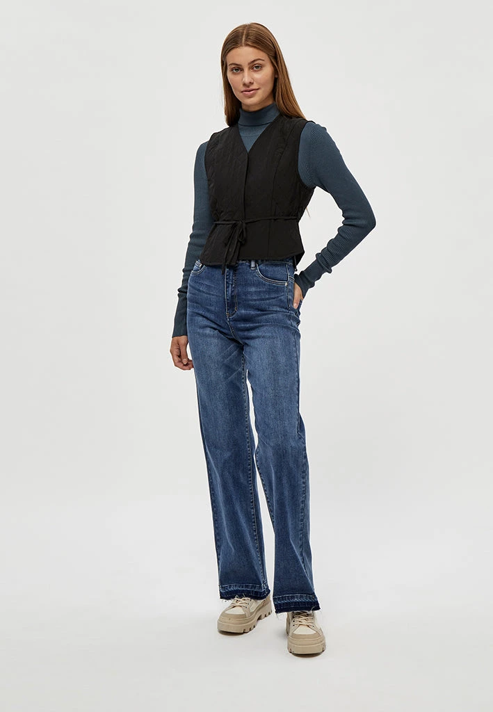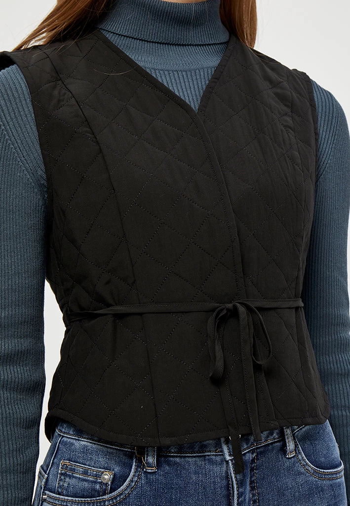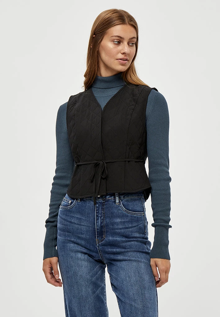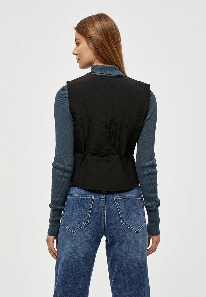 Lovely green vest in a quilted quality. The vest is super cool for autumn. It can be used with or without the removable belt at the waist.