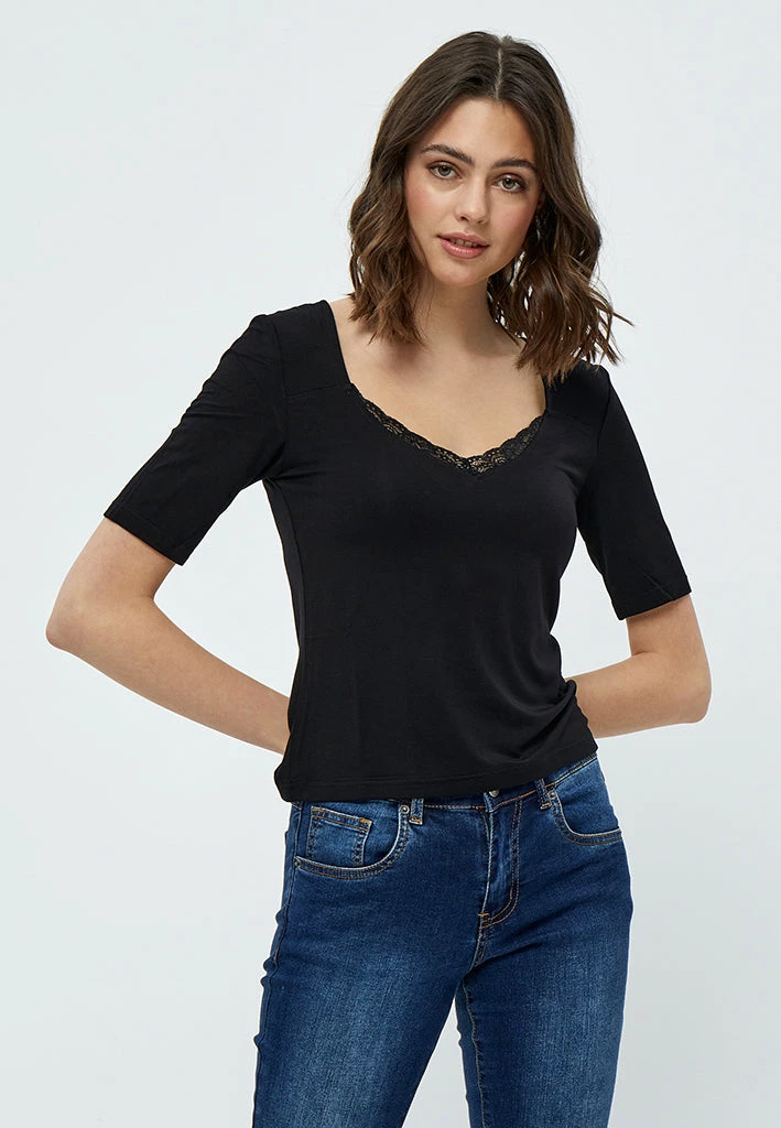 Lovely tee with a tight fit. The tee has a beautiful lace detail. A must have.