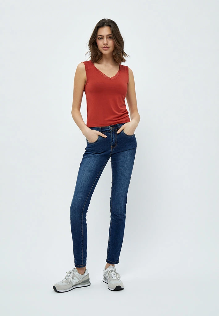The Giselle Lace Top is an essential in every wardrobe. A staple top with no sleeves and a little lace trim on the collar.