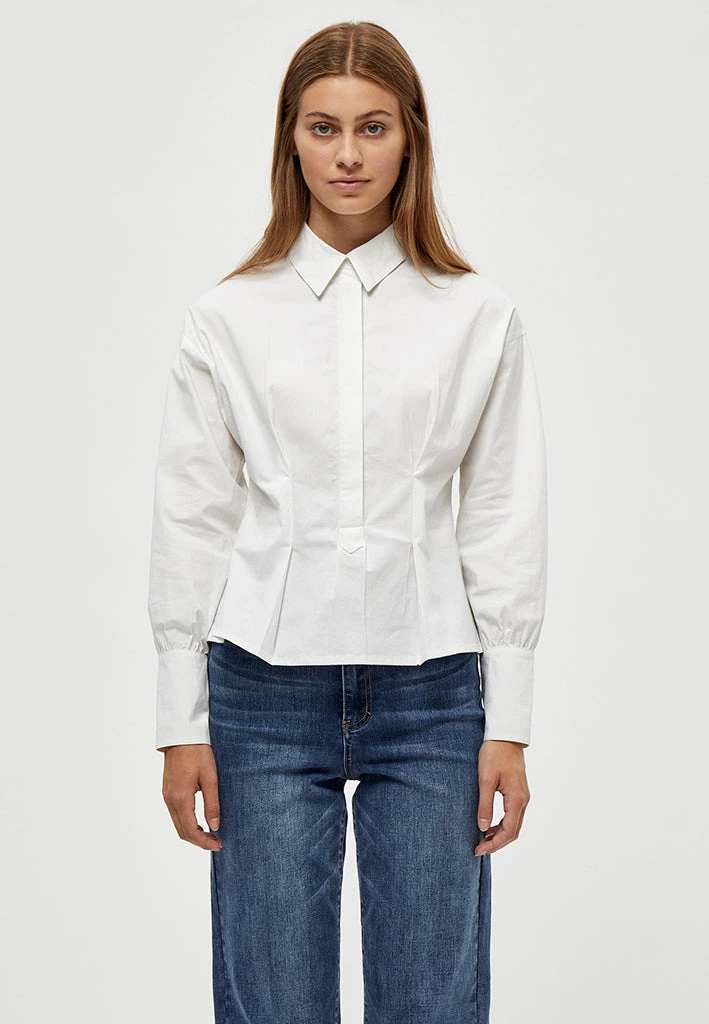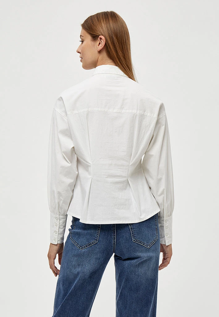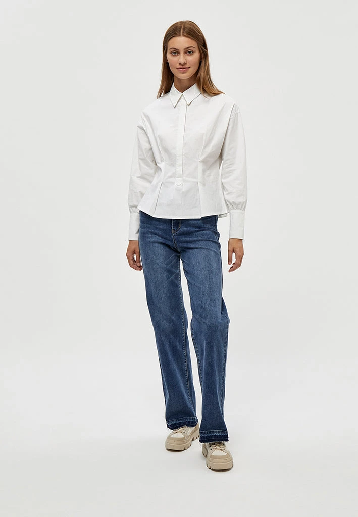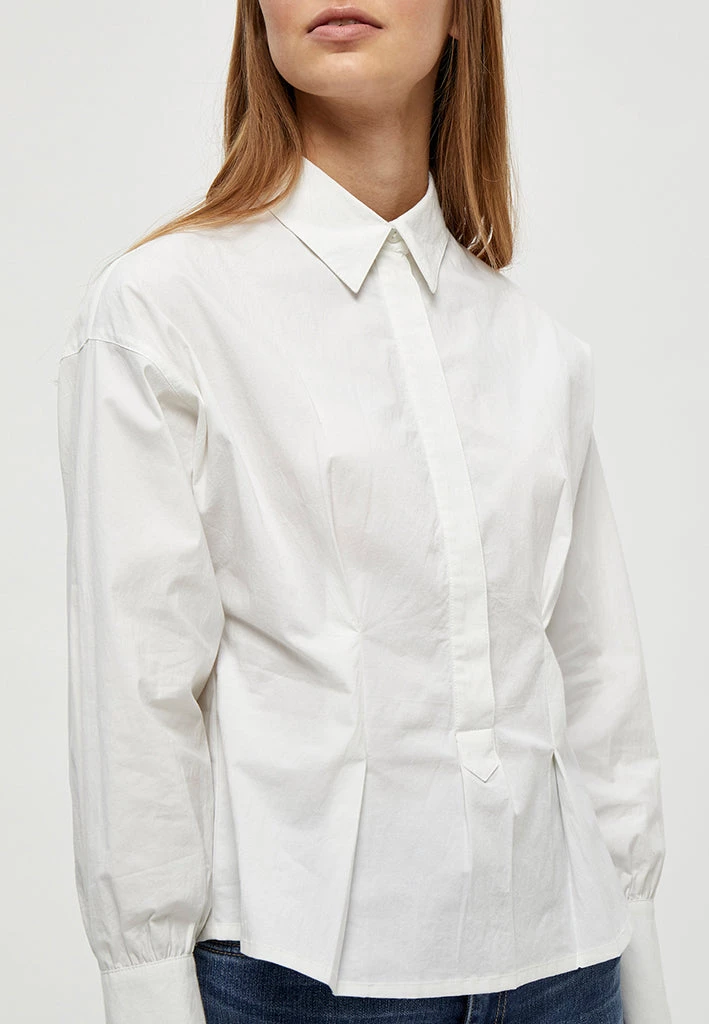 Beautiful shirt with nice waist. The shirt is tighter at the waist. It has a collar, is closed by buttons and has high cuffs at the sleeves.