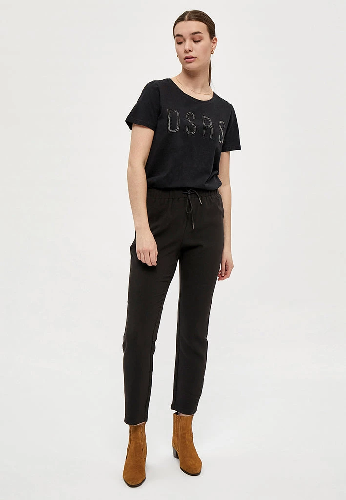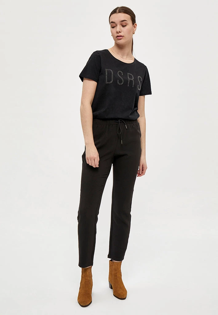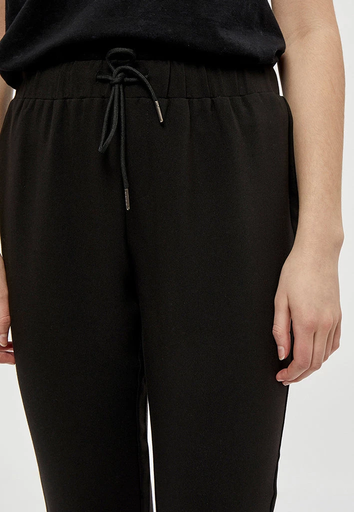 Casual pants with drawstring at the waist. The pants have a relaxed fit and are stretchy.